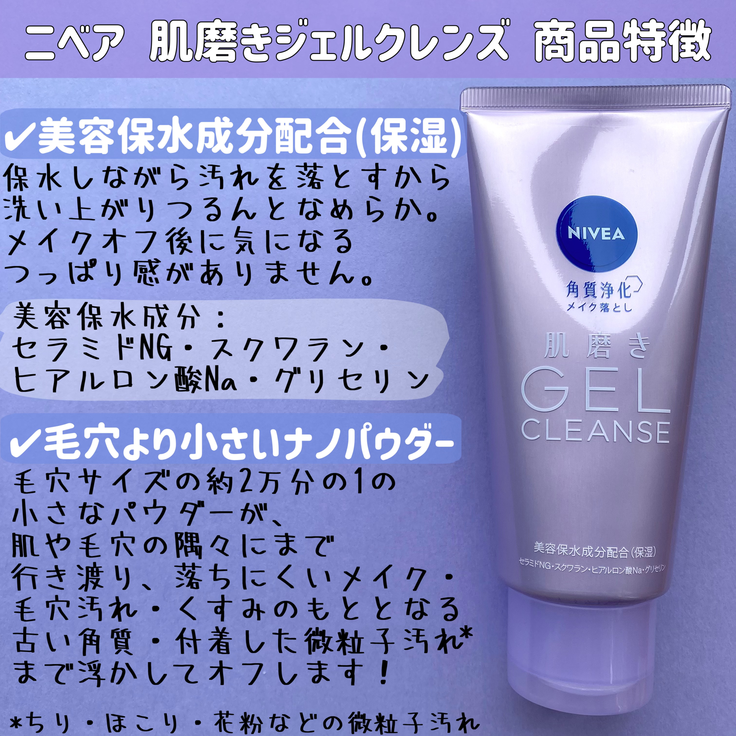 ᝰ✍︎꙳⋆ニベア角質浄化メイク落とし✨肌磨きジェルクレンズ濃密ジェルがとろけながら汚れを浮かし、落ちにくいメイク、毛穴汚れ、くすみ※1のもととなる古い角質、付着した微粒子汚れ※2までもすっきりオフ✨※1古い角質によるくすみ※2ちり、ほこり、花...