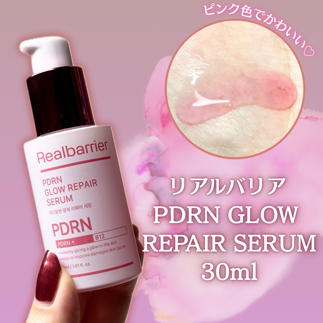 🎀Realbarrier🎀.*・゚PDRNGLOWREPAIRSERUM.゚・*.ピンク色がかわいすぎる🫣💕人工的な色味ではなく、ビタミンB12の色💞バラ細胞から抽出した低分子ヴィーガンPDRNと毛穴の1/384サイズの乳酸菌由来のラクトエク...