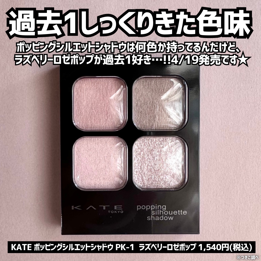 \大人気アイシャドウの新色/ポッピングにロゼ登場ラズベリーロゼ×グレージュ大人気のポッピングシャドウシリーズからラズベリーロゼメグレージュが登場KATEポッピングシルエットシャドウKP-1ラズベリーロゼポップ1,540円(税込)グレージュって...
