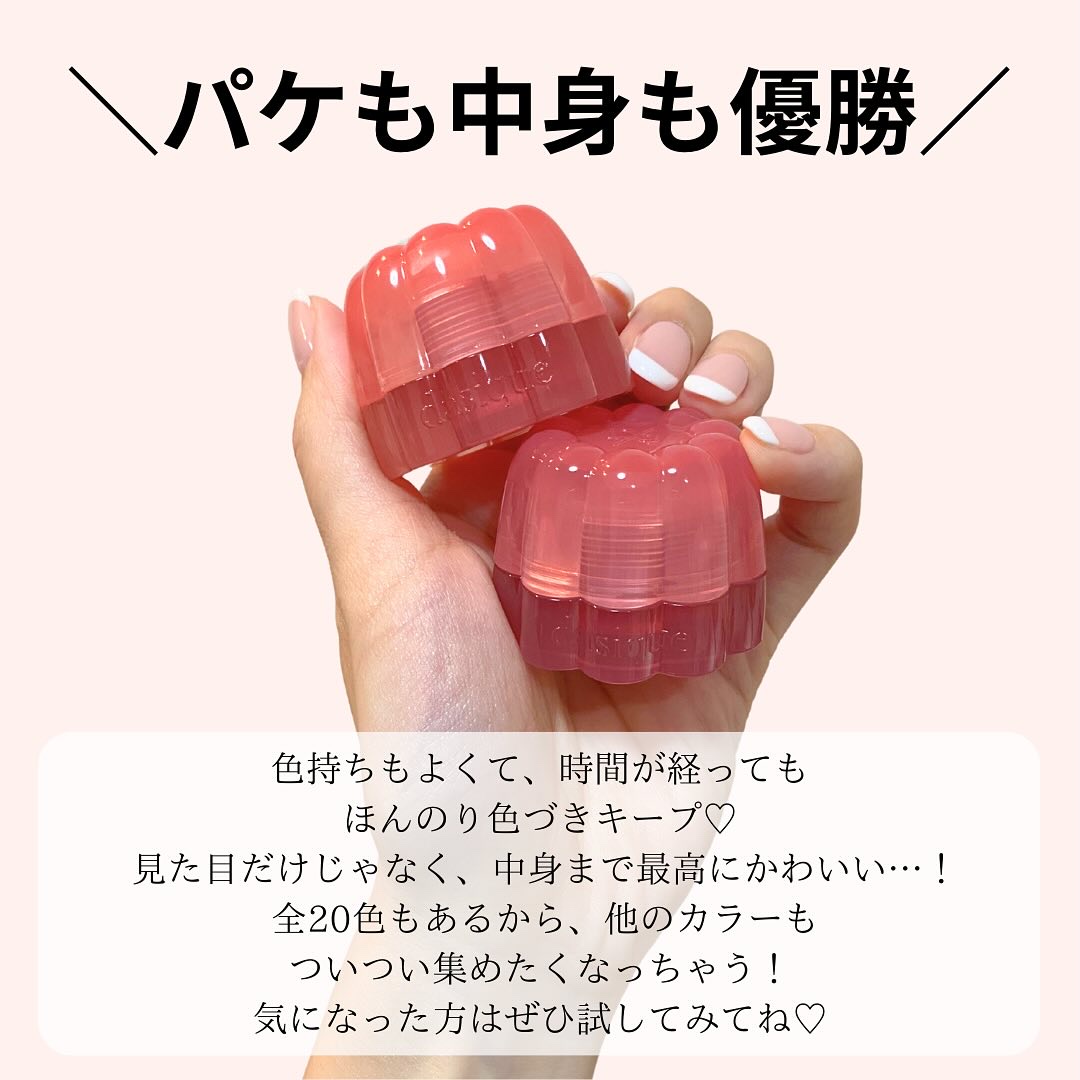- プリンのような新感覚のチューイングテクスチャーに澄んだカラー感が加わったリップ&チーク。 ぷるぷるとしたゼリーのようなツヤ感が唇と頬にほのかに染まるウォーターリーグロウリップ&チーク。 甘いプリンのようにぷるぷるとした新感覚のチューイングテクスチャーで、べたつかず、なめらかに密着し唇にしっとりとした保湿感を与えます。 イエベ、ブルベの自分の肌トーンごとに使いやすい20色の多彩なカラーバリエーション、透明感のある澄んだカラーと鮮やかな発色、重ね塗りすればするほどあふれ出す、ほのかな水光リップへ導きます。 可愛いプリンのようなラブリーなパッケージで持ち運びが簡単!パッケージの中にはミニブラシが付いていて、衛生的に使えます。 ※ふんわりとしたゼリーテクスチャーの特徴により、固まりが生じることがありますので、薄くレイヤーを重ねて十分に塗り伸ばしてください。