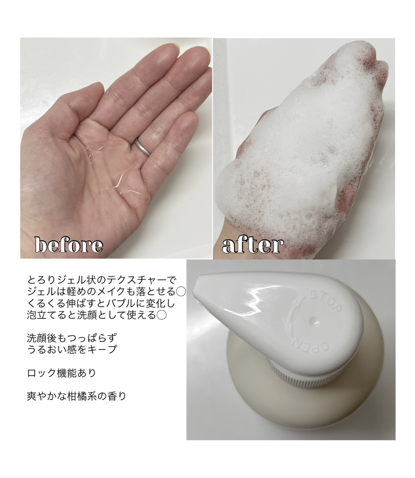 | スキンケアランキング第19位 | ワンプッシュでふわふわ泡が出てくるのに、 肌にのせるとジェルに変化する不思議な感覚 | 詳細を見る | ||