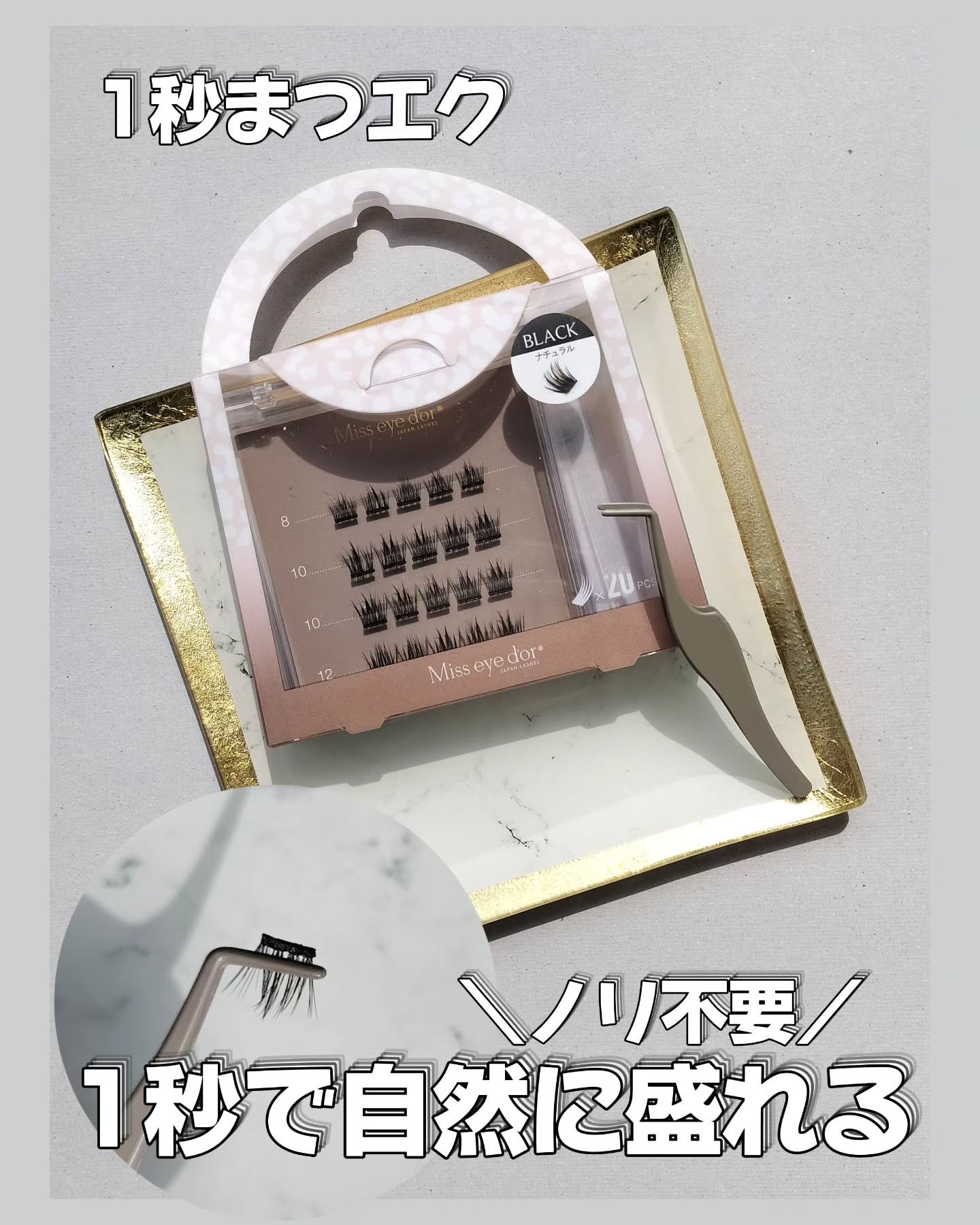 - のり不要。そのまま1秒装着。 高品質の毛束を簡単に装着可能。肌に優しい使い心地で手軽に装着できる。自然な見た目と多彩なデザインが魅力的。 ◎こんなシチュエーションに ・手軽に目元の印象を変えたい ・部分的にボリュームが欲しい ・軽いつけまつ毛を使いたい ・自然な仕上がりにしたい ◎1秒まつエク3つの特徴 ・接着剤不要の簡単1秒装着 ・3種類のスタイル(ナチュラル、クラウン、ボリューム)でデザイン自由自在 ・本物の毛先を再現