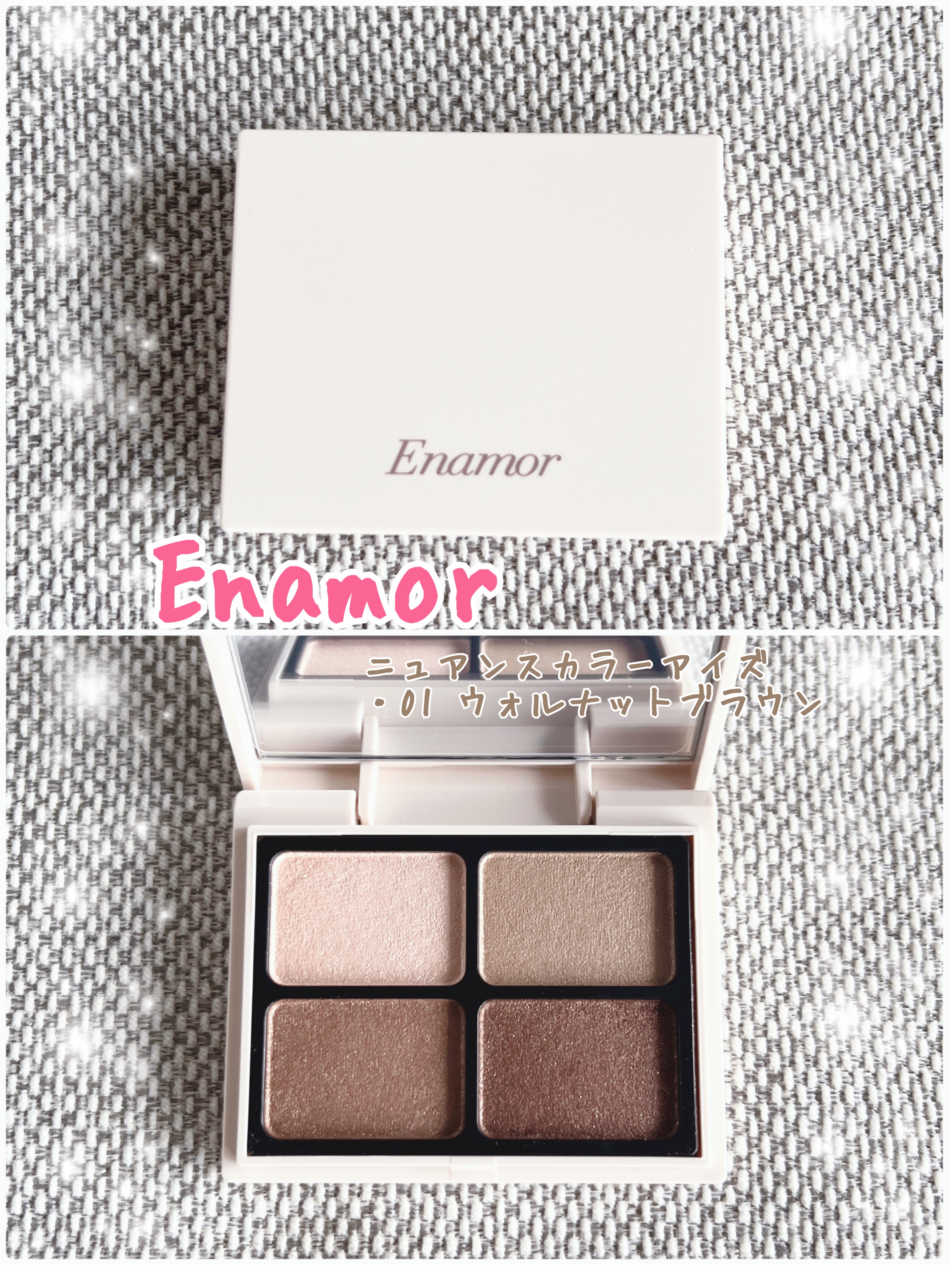 - 4つのニュアンスカラーをレイヤードし 自然な奥行きと輝きが楽しめるアイパレット。 Enamorニュアンスカラーアイズは 「攻めすぎず、媚びすぎない自分らしさ」をコンセプトに、 肌に馴染みやすくしっとりしているけれども さらっと軽くボカしやすいテクスチャーと カラー展開にこだわりました。 ニュアンスカラーをレイヤードすることで 自然な奥行きが演出でき、作り込みすぎない 自分らしいナチュラルな仕上がりにしてくれます。