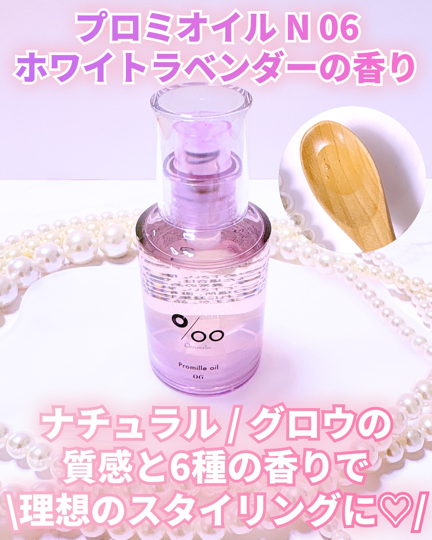 ❤︎PromilleプロミルオイルN02サクラの香り全6種30ml¥1,925(税込)質感と香りで選べるカラフルなヘアスタイリングオイル🩷16種の天然由来成分をベースに01〜06の各アイテムごとに異なるポイント成分を配合。オイルの酸化を防ぎ手...