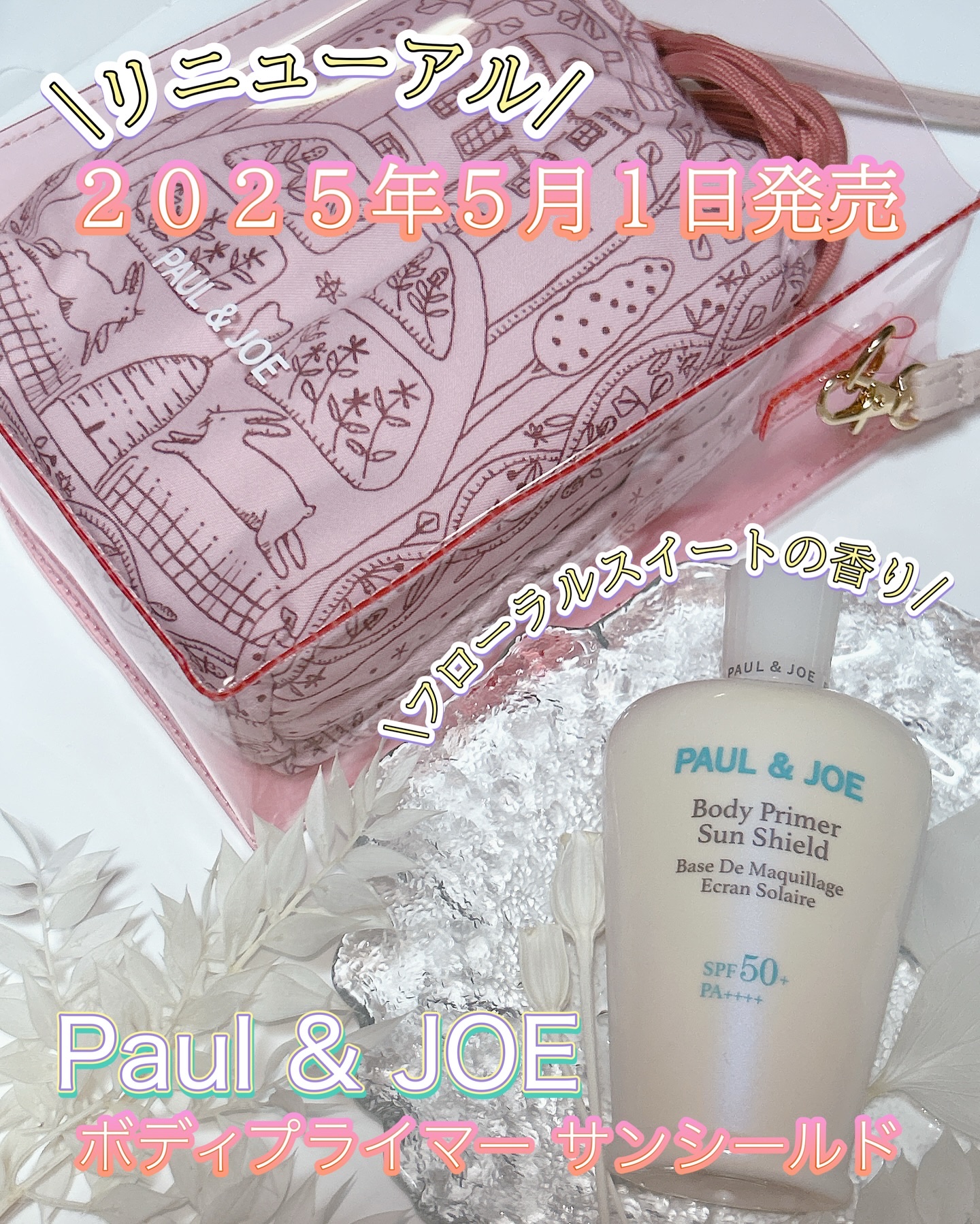 - リニューアル発売 ・SPF50+ PA++++のUVカット効果で汗・こすれに強い※1スーパーウォータープルーフタイプ、さらにはUV耐水性★★と快適な使用感まで搭載したポール&ジョー史上最強スペックの2層式日やけ止めが、紫外線吸収剤不使用のビーチフレンドリー処方に。 処方を変えながらも最強スペックは維持し、肌も、環境も大切に想う日やけ止めにリニューアルします。 ・スクレドール※2やシリコーンゲルが肌の凹凸や色ムラをカバー。紫外線から徹底防御しながらも肌をなめらかに整えて自然なツヤ感や立体感を与え、美しい”魅せ肌“に仕上げます。 ヴァカンス気分を盛り上げる、フローラルスイートの香り 予約受付開始:4月17日(木)
