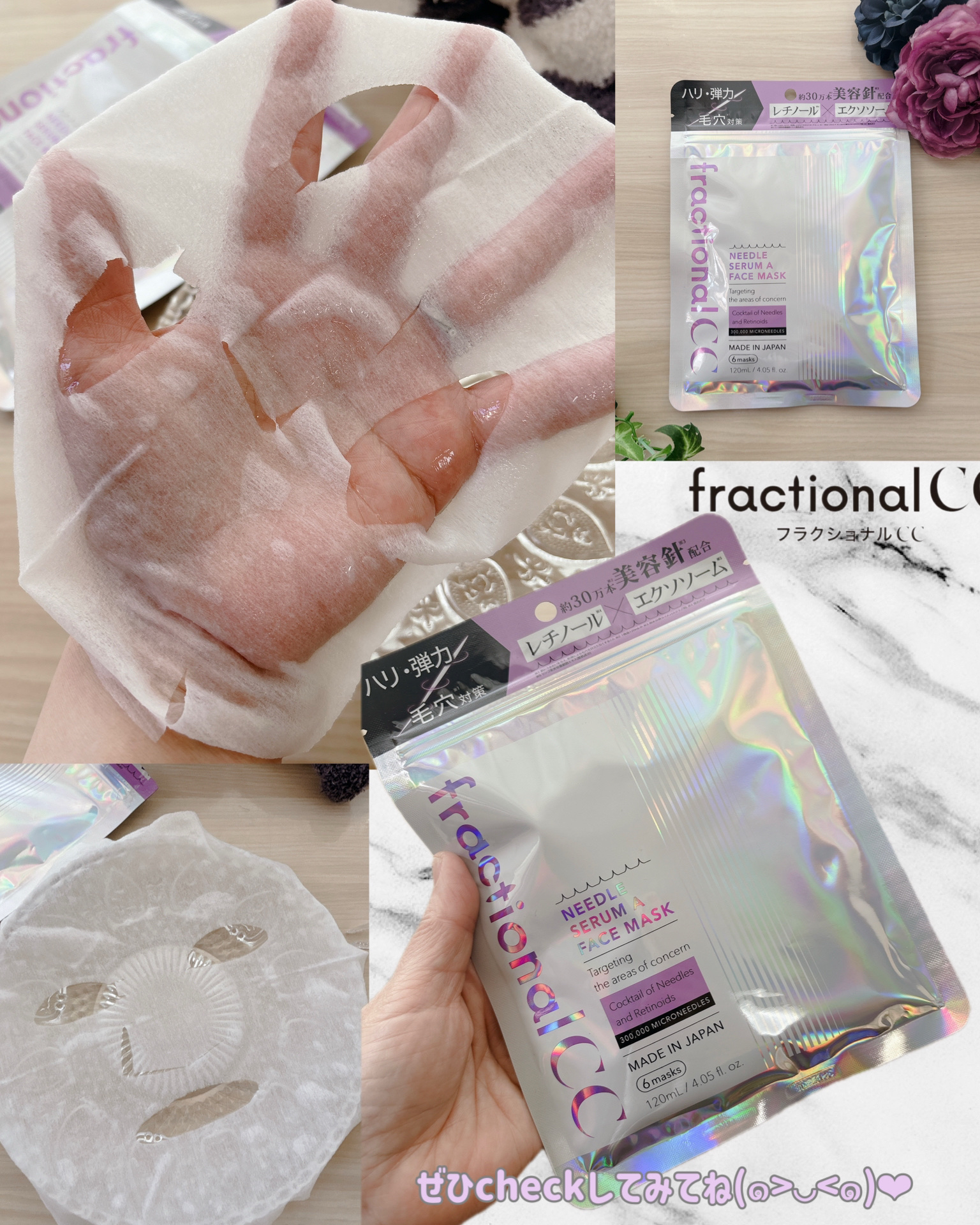 #PR#fractionalCC@fractionalccニードルマスクAです💜6枚入り。 肌のハリ、ツヤ、弾力が欲しい!乾燥による毛穴が目立つ😵そんな悩みに👍️レチノール*¹、エクソソーム*²、サーモンPDRN*³配合。約30万*⁴本の美容...