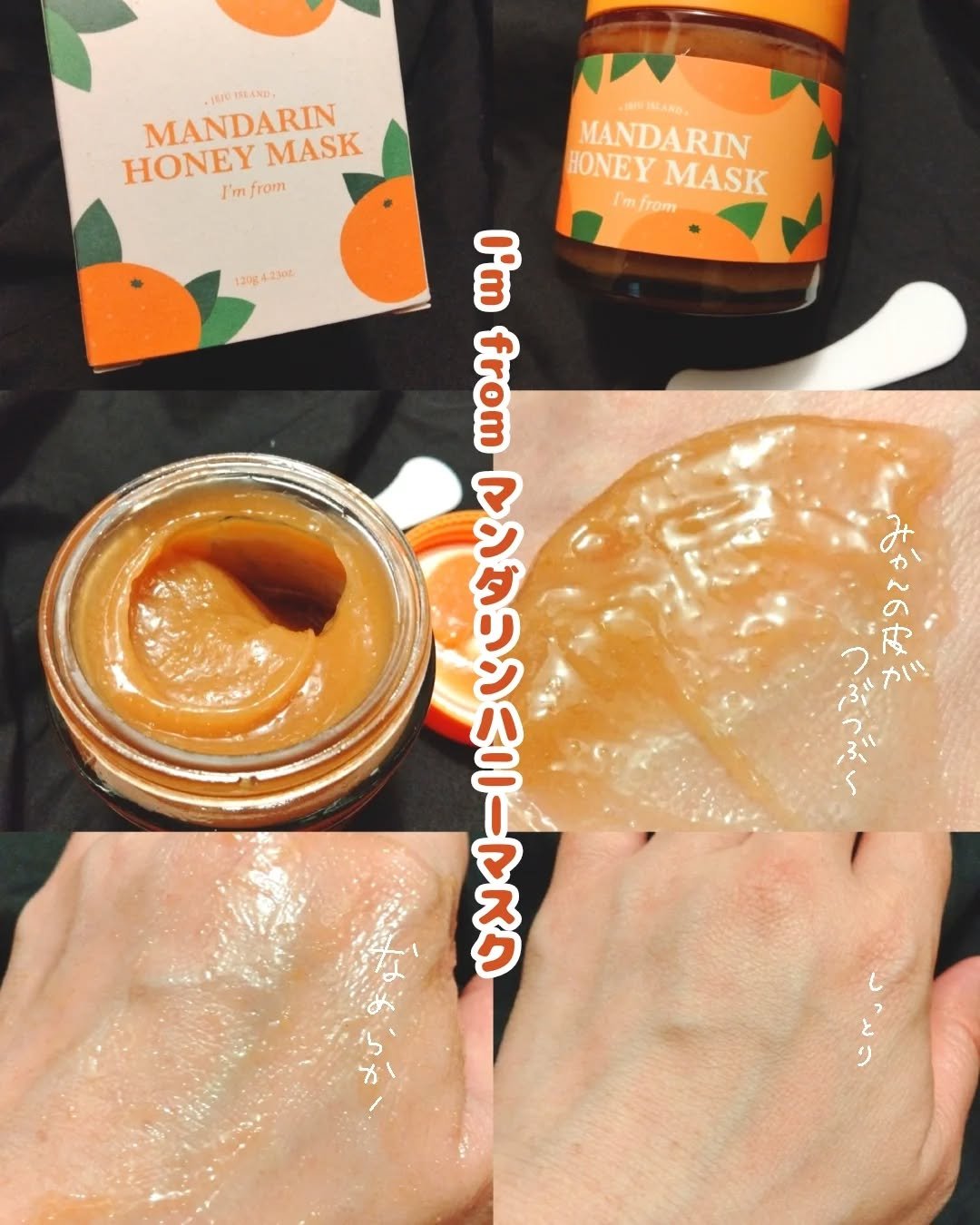 I'mfromマンダリンハニーマスク@imfrom_jpかわいいー🍊♡【プレミアムみかん花蜂】のマスクチェジュでのみ生産されるプレミアムみかん花蜂38.7%。ザラザラはみかんの皮の細かい粒子なんだって。みかんの皮の細かい粒子が肌の角質はもちろ...