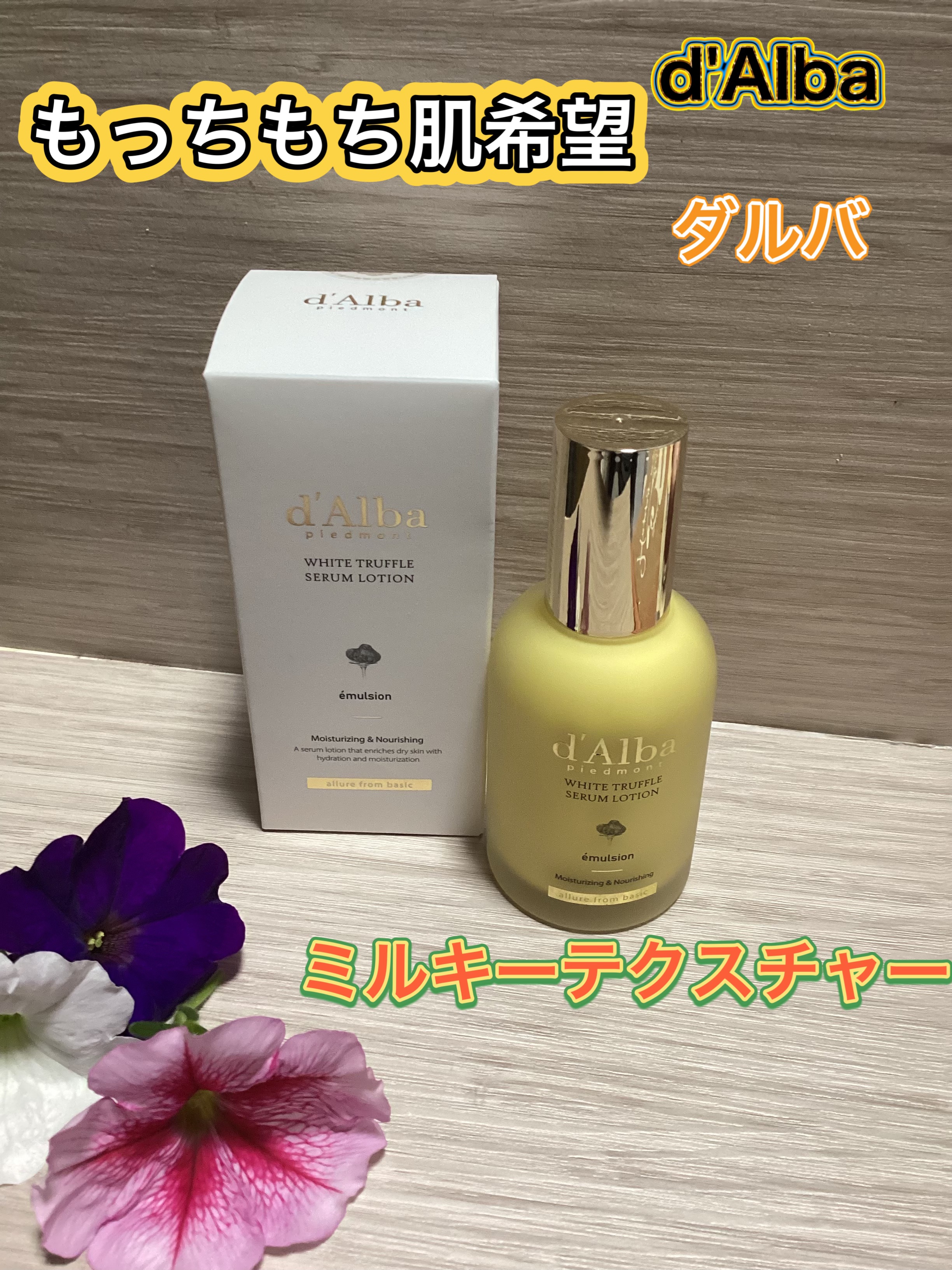 ダルバ独自の特許成分トルフェロール™️ 美白機能性ナイアシンアミド2%をベースにグルタチオン×ビタミンCのシナジーケア オイルinのこっくりテクスチャーが絶妙な保湿感♡ 乾燥肌なので、さらっとした乳液はどうも物足りなくて… このセラムローションは頼れる乳液✨ 気になる部分に重ね塗りしてもべたつかないのも良いです。