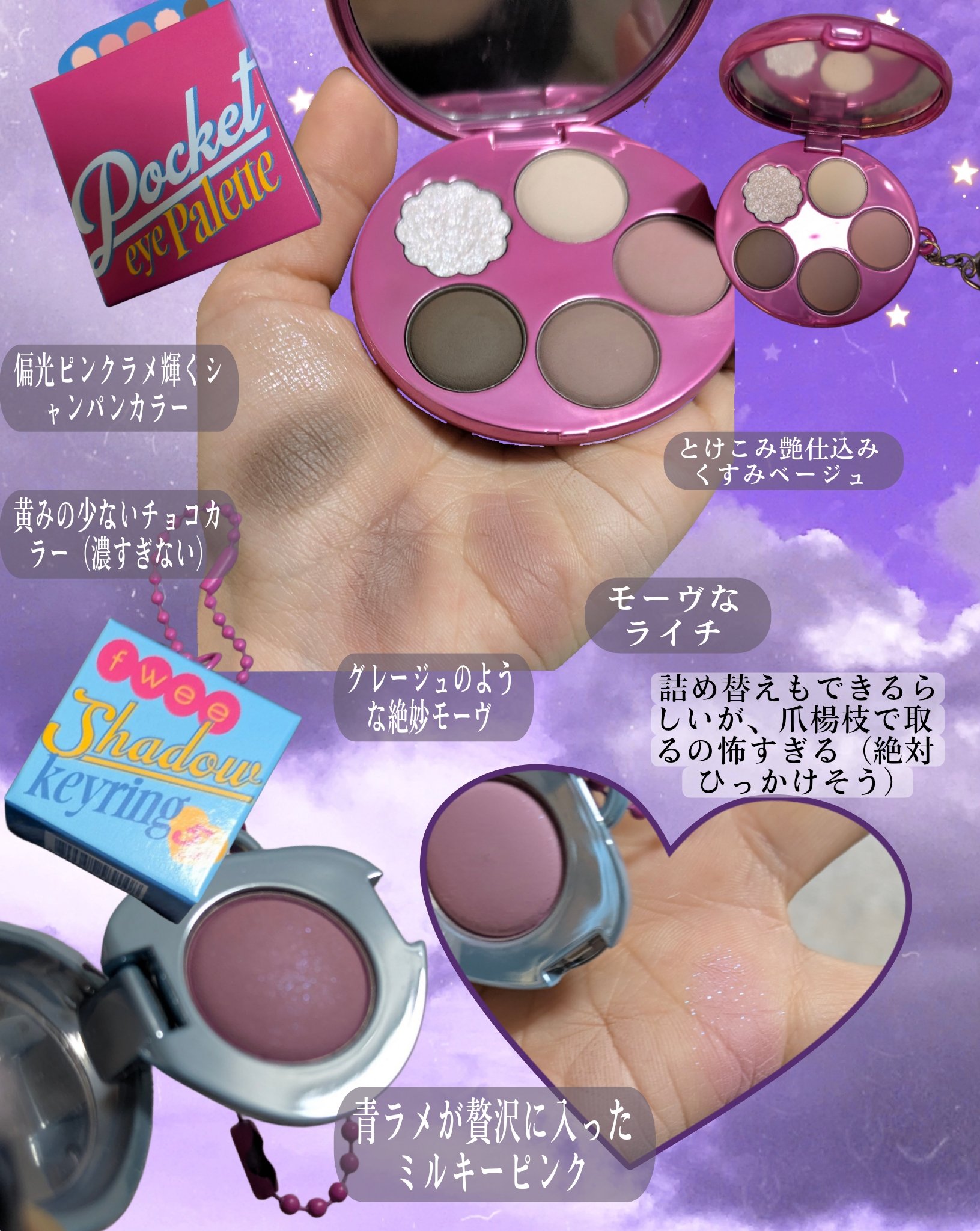 🩵fwee🩵••∙👜∙••〖NEW〗ポケットチークパレット-CP02ストロベリー&レモンポケットアイパレット-EP02ヨーグルトピーチ••∙🎨∙••キーリングコスメの元祖fweeから次世代キーリングコスメが2種類発売されました✨...