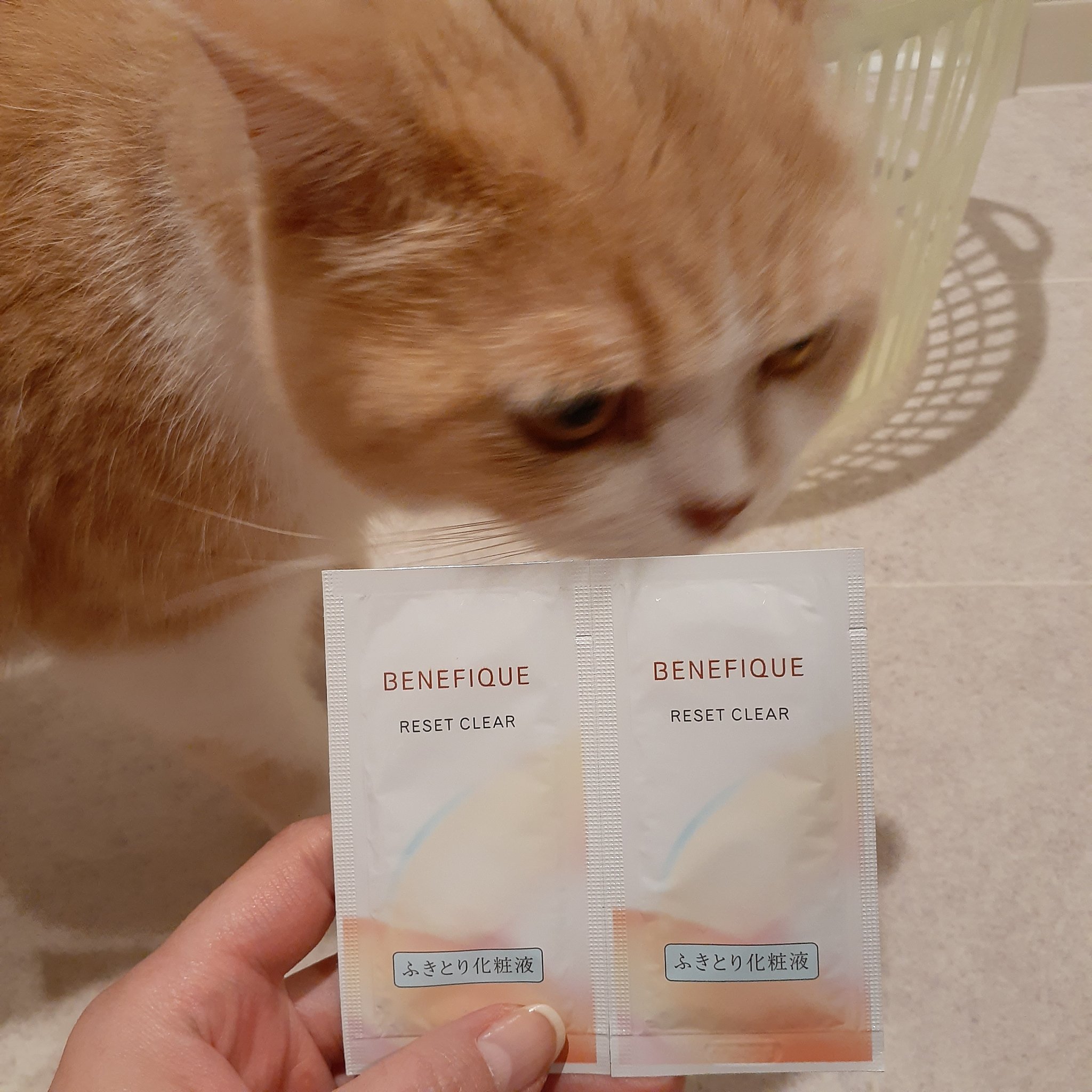 とろっとしたテクスチャーで、ハーバル・フローラルの香りが広がるふきとり化粧水。 両面使えるのが良かったです。メッシュ面(ブルー)でふきとり化粧液などで、浸透・透明感の妨げとなる不要な角層をやさしく除去。 化粧水とコットン、どちらも使い心地が良かったので、現品検討したいです。