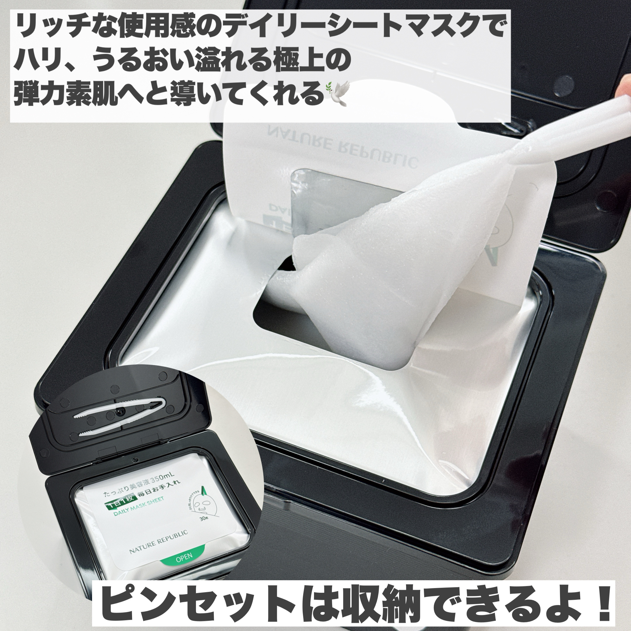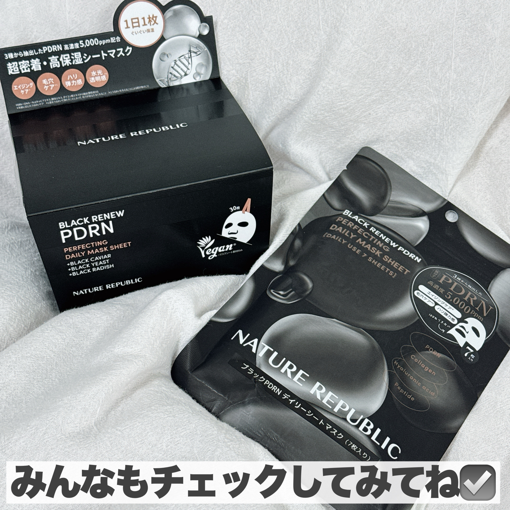 _NATUREREPUBLICBLACKRENEWPDRNPERFECTINGDAILYMASKSHEETネイチャーリパブリックブラックPDRNデイリーシートマスク100ml/7枚/¥770(税込)350ml/30枚/¥2,420(税込)【高...