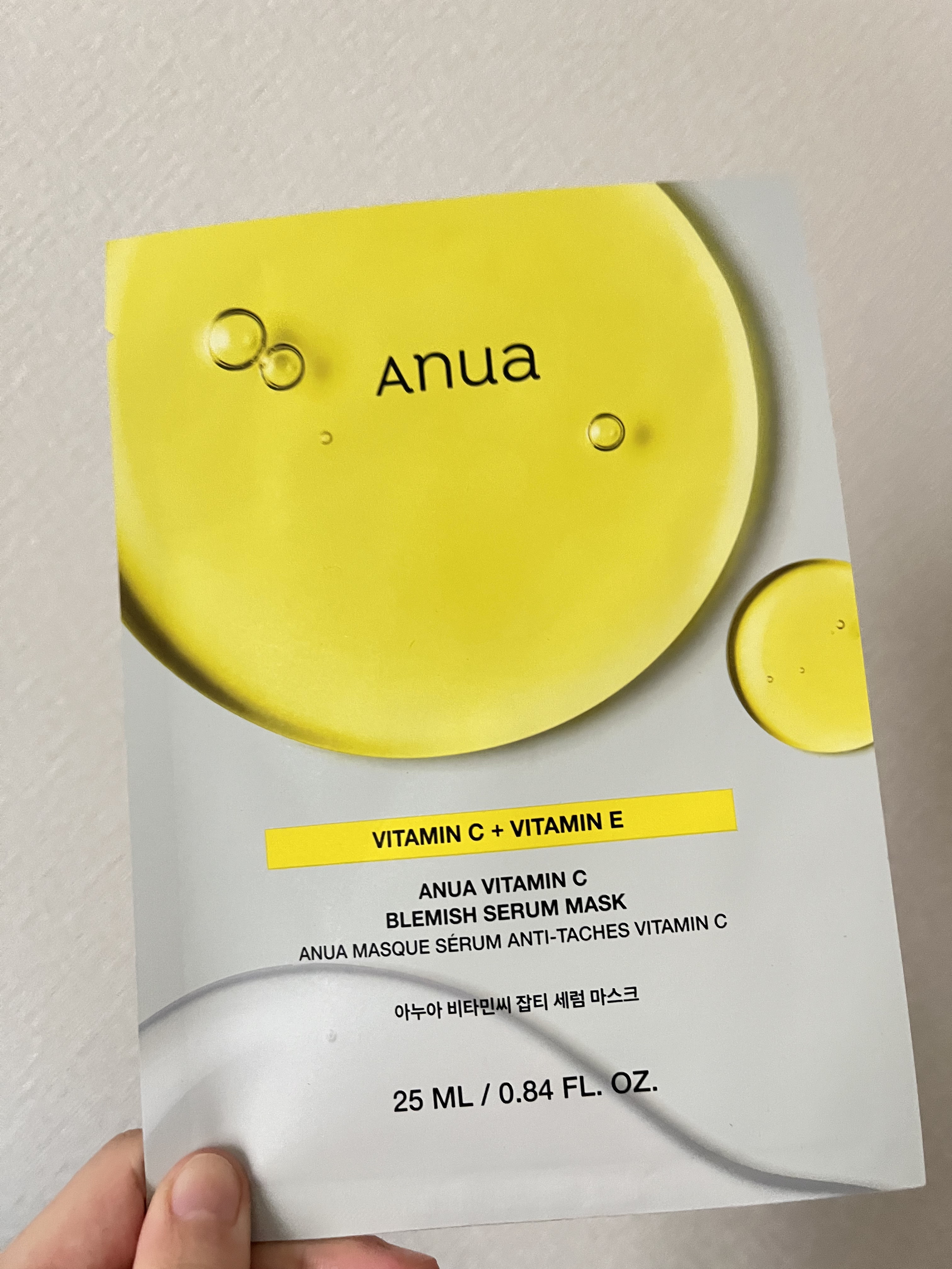 AnuaビタミンCブレミッシュセラムマスクパック薄めのシートでプルプル、ツヤツヤした感じのシートです。美容液もヒタヒタに含まれてます!少し薄めの黄色っぽい感じです🍋密着も良かったです!このタイプはツヤ、トーンに✨少し匂いが独特な感じの香りのよ...