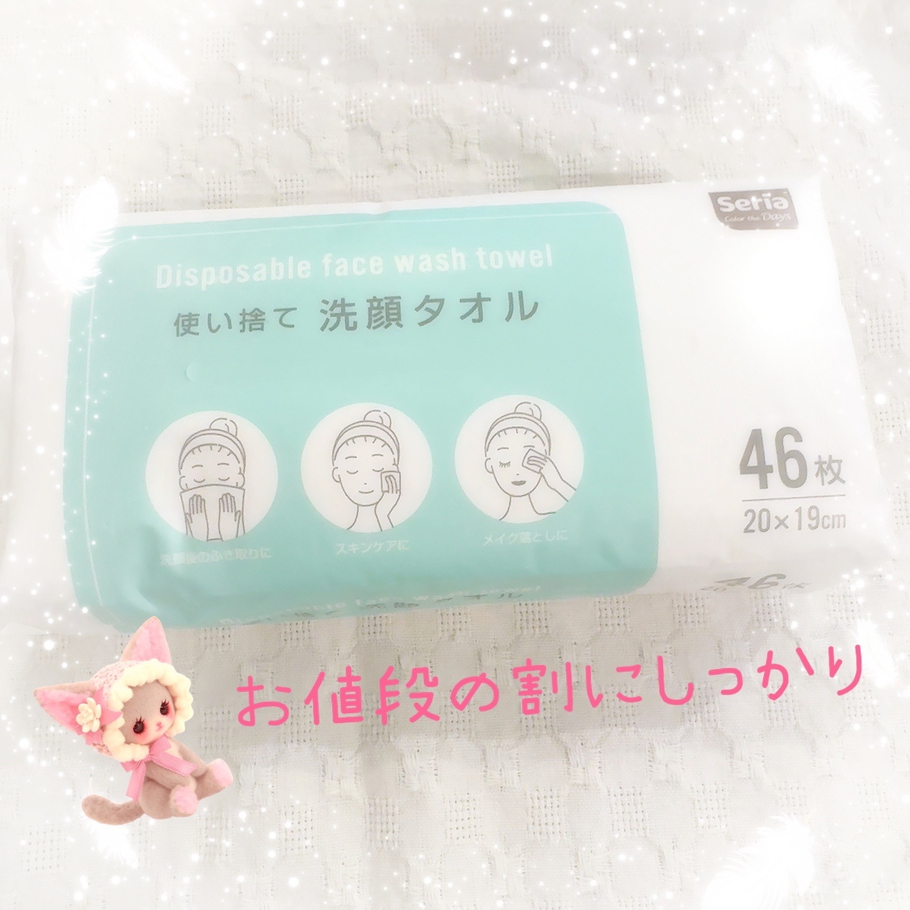 🟩Seria使い捨て洗顔タオル🟩価格:100円(税抜)ひとつに46枚も入っていて大容量だし、洗顔後1枚でしっかり拭き取れるからすごくコスパが良くてオススメです!!使い捨てなところも衛生面的にすごく良いです!!百均で試せるので是非試して見てくだ...