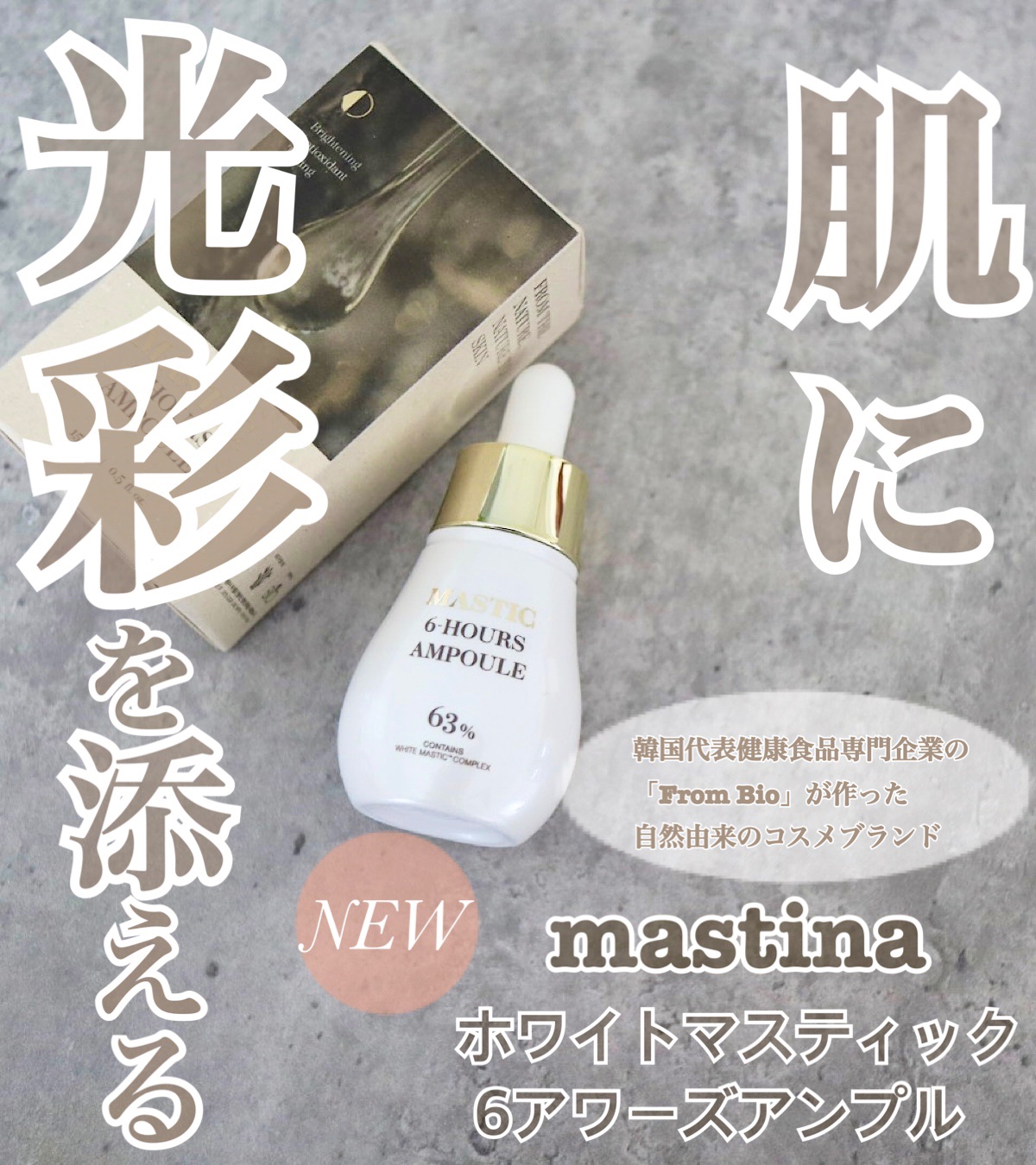 マスティナというブランドは韓国代表健康食品専門企業の『From Bio』が作った自然由来のコスメブランド。 一滴のパワーがすごい! マスティックガム→はじめて知った成分なのだけどギリシャのキオス島でしか育たない、神様がくれた涙と呼ばれるマスティックの木から抽出された成分でターンオーバーを正常に導いてくれてる。 とにかくうるおいに包まれて、つや肌が続く〜✨ 贅沢な使用感。