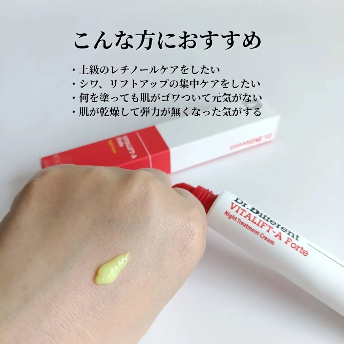Dr.Differentビタリフト-Aフォルテ20gドクターディファレントはレチナールクリームで有名で様々な濃度のレチナール商品を保有したダーマコスメティックブランドだよ☝️ビタリフト-Aフォルテはレチナールが有効濃度の0.1%で配合されてい...