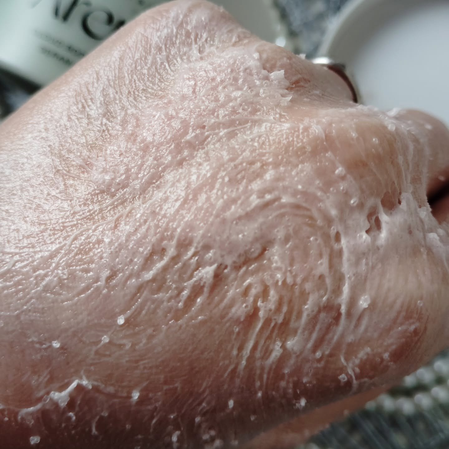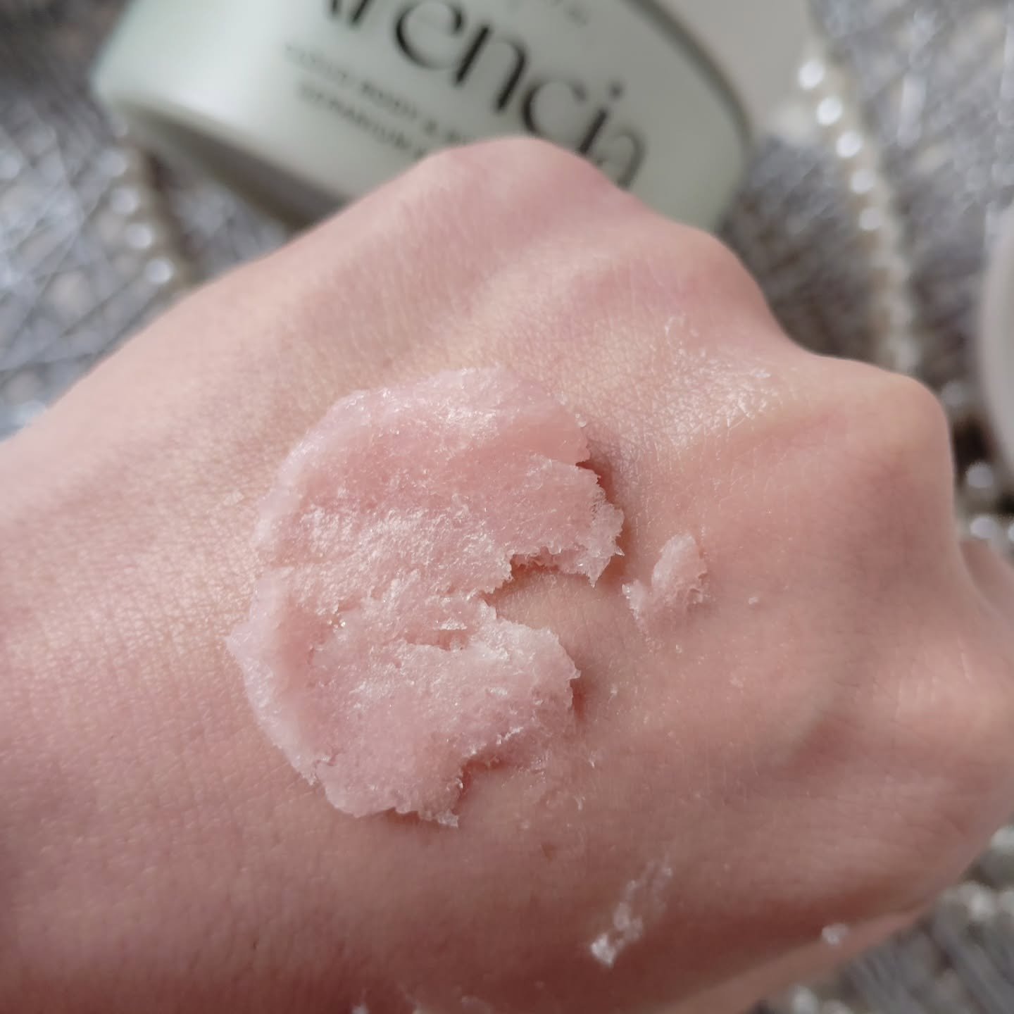 - Glycerin, Sodium Cocoyl Isethionate, Sodium Chloride, Sea salt, Rosa Damascena (Rose) Flower Oil, Helianthus Annuus (Sunflower) Seed Oil, Olea Europaea (Olive) Oil, Ceramide NP, Lavandula Angustifolia (Lavender) Flower Extract, Rosa Canina (Dog Rose) Fruit Extract, Jasminum Officinale (Jasmine) Extract, Vitis Vinifera (Grape) Fruit Extract, Rosmarinus Officinalis (Rosemary) Leaf Extract, Calendula Officinalis (Pot Marigold) Flower Extract, 1,2 Hexanediol, Fragrance