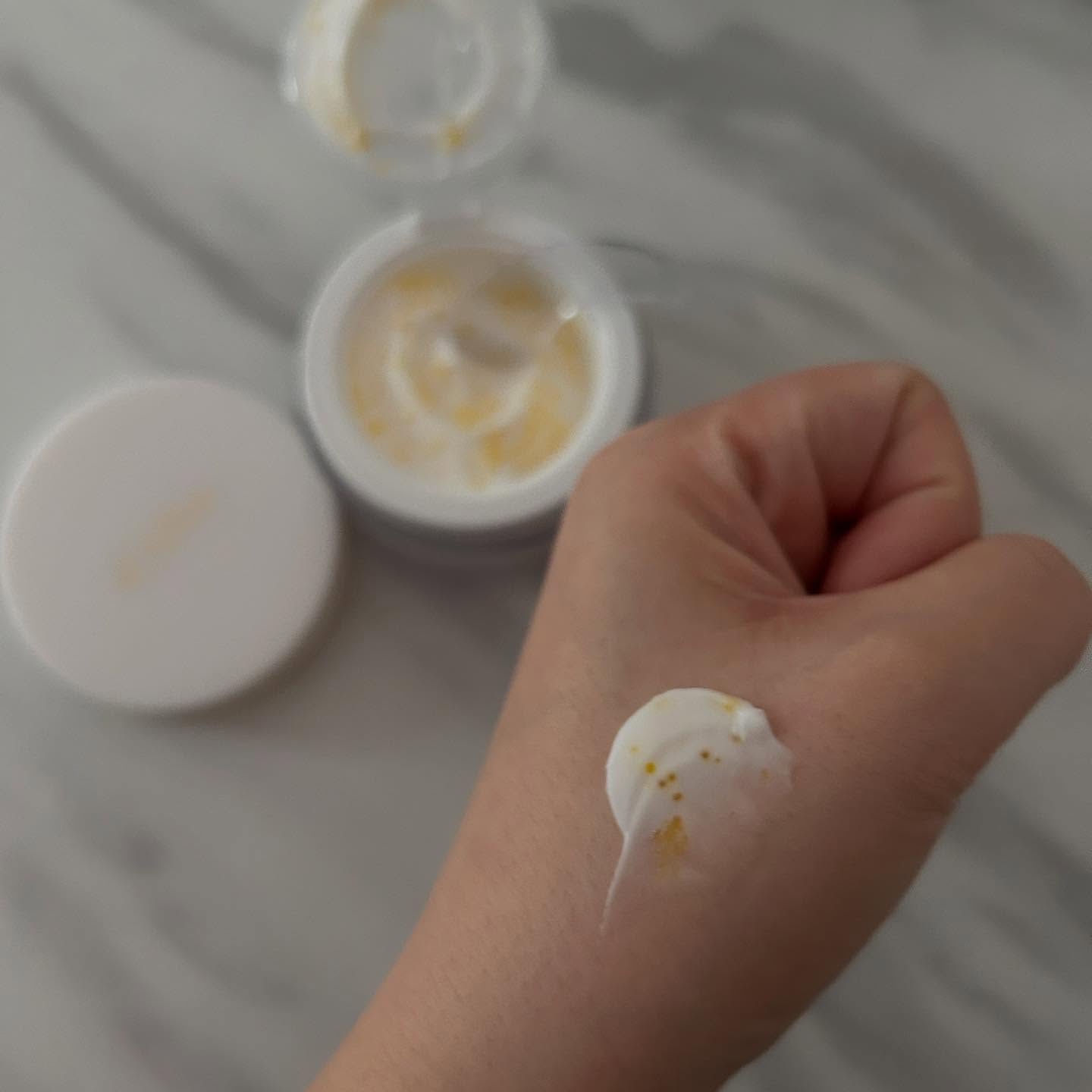 d'Albaビタトーニングカプセルクリームビタミンケアもd'Albaにお任せ💗トナーと合わせてクリームも使い始めてみました🌿蓋を開けると黄色の粒々がたくさん入っていてびっくり😳!この粒々がビタカプセルなんだそう🍋肌になじませていくとカプセルが...