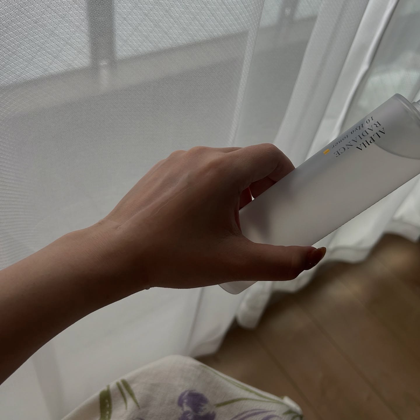 全製品臨床テスト、敏感肌刺激テスト完了済🌿 アルファ アルブチンと保湿に役立つ氷河水配合でしっとりとした明るいお肌に導いてくれる✨ 軽いとろみを感じるウォータリーなテクスチャー💧 ぐいぐいと吸い込まれるようにお肌になじんでいくんだけどやや少なめの量で満足な感じ🥰 仕上がりのお肌はヴェールに包まれているようなシルキーな肌ざわり 顔色が明るくなったように感じます