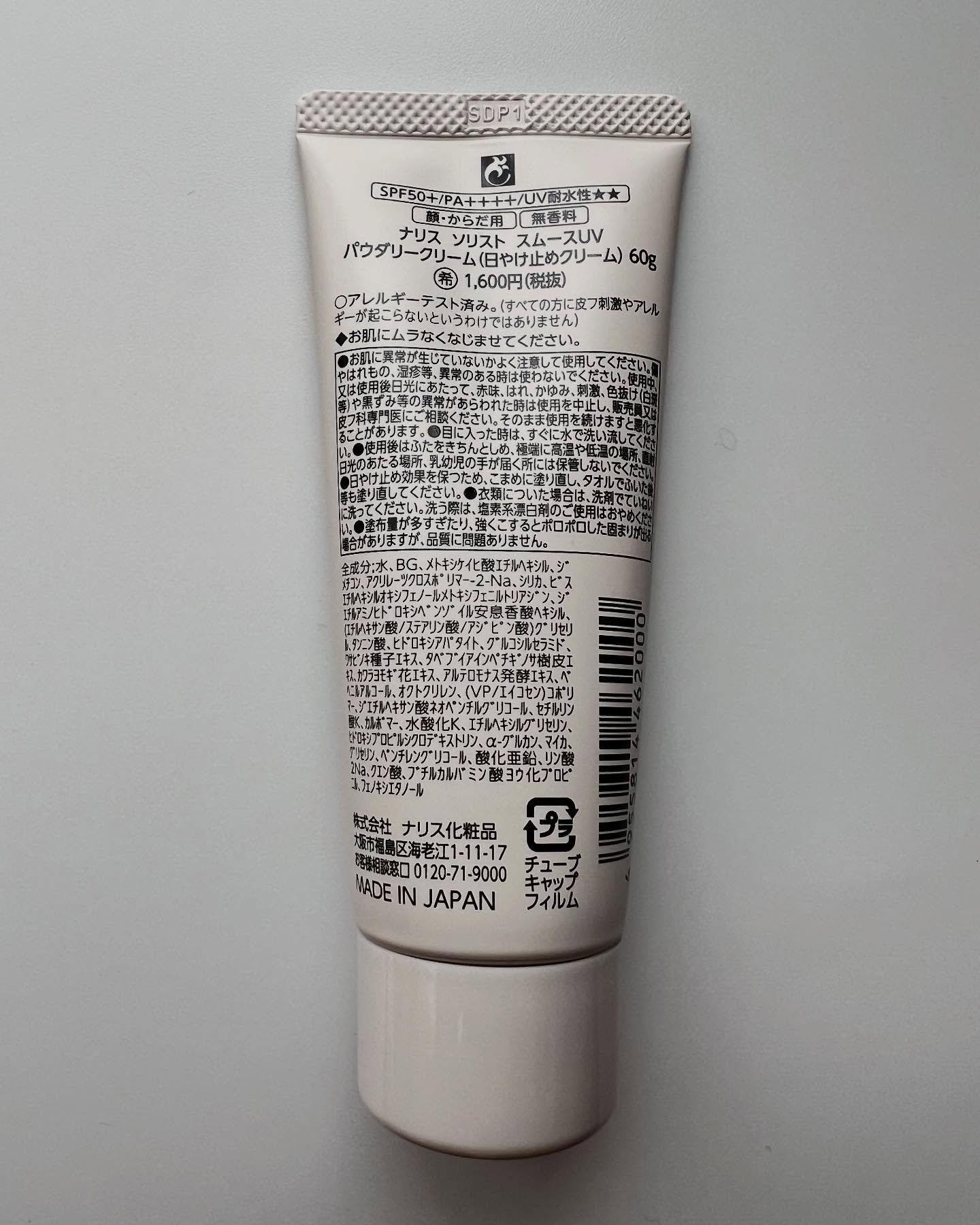 #PR#SOLISTSOLISTスムースUVパウダリークリーム肌を紫外線から守りながら、サラサラ感続く日焼止めクリームです。SPF50+PA++++グレーのおしゃれなチューブです。手に取るとさらっとしたクリーム。つやっとみずみずしいクリームが...
