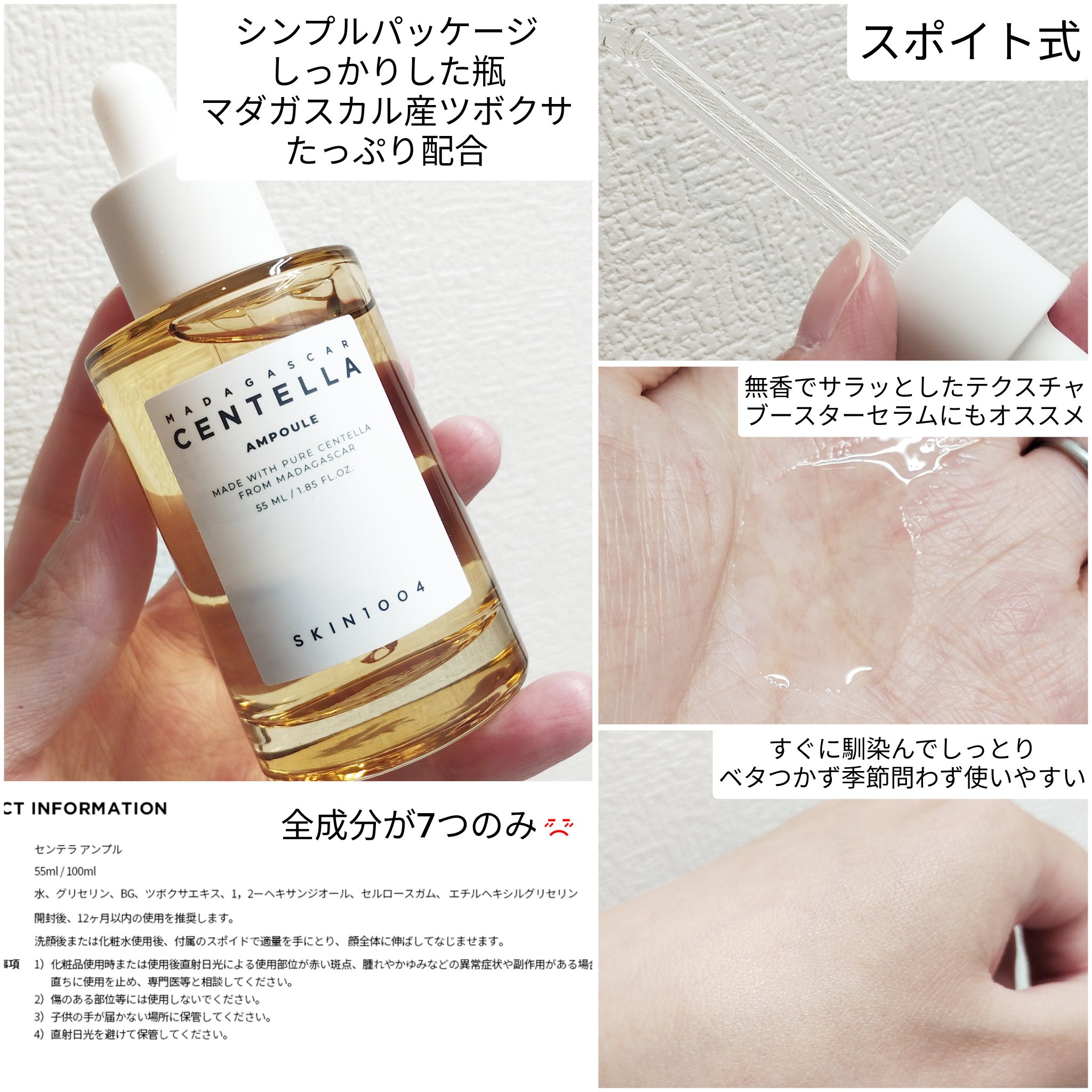 ☆☆☆SKIN1004☆☆☆マダガスカル センテラ アンプル◎商品特徴太古の自然マダガスカルの自然由来ツボクサエキスを100%配合し、刺激を受けた肌を鎮静させ、健康的に管理する美容液です。敏感な肌を素早く鎮静させると同時に、外部の刺激によって...