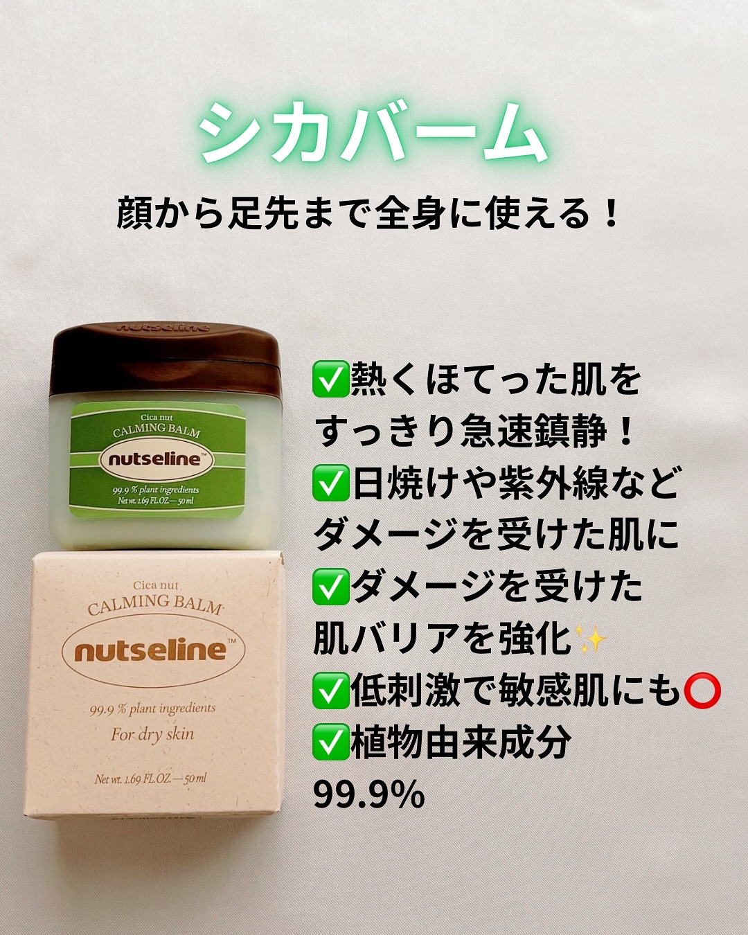 植物由来成分で全年齢の乾燥肌の人が使えるスキン・ボディケアブランドNutseline(ナッセリン)といえばこの2つのバーム✨💛ナリシングバーム植物由来成分100%で全身に使える優しい香りのマルチバーム3種のナッツオイル配合で長時間潤いをキープ...