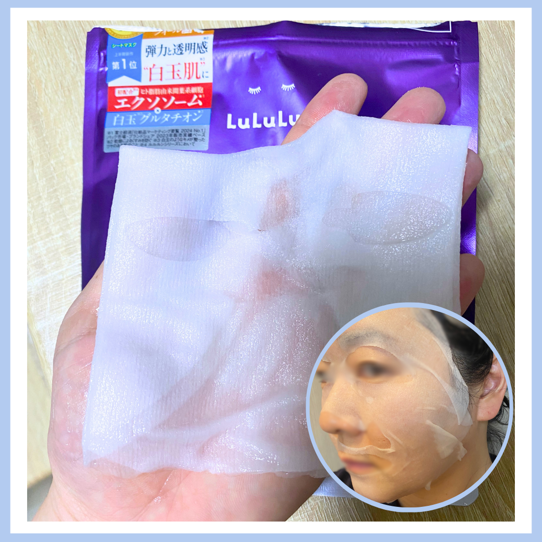化粧水フェイスマスクとなっているところがポイントとなっていて 毎日の化粧水の代わりに使えるらしい! 大人のくすみの原因でもある糖化やメラニンの蓄積に着目した フェイスマスクで毎日の化粧水として置き換えることで うるおいが逃げにくい肌に保ち、健やかなツヤ感と透明感のある肌へと 導いてくれるそう。 そしてマスクシートですが肌触りがよくていい感じ。 あとシート自体が少し大きいからフェイスラインもすっぽりと覆ってあげられる感じがまたいい!