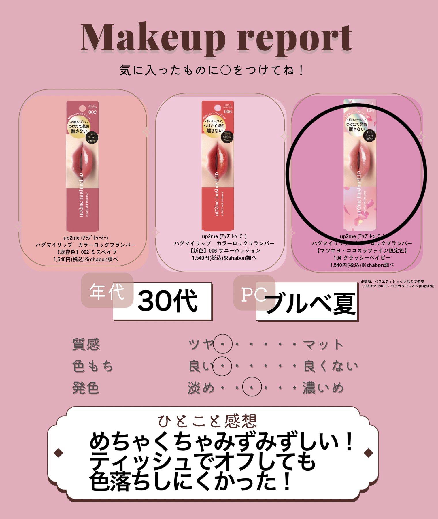 商品詳細情報up2me アップトゥーミー ハグマイリップ カラーロックプランパー