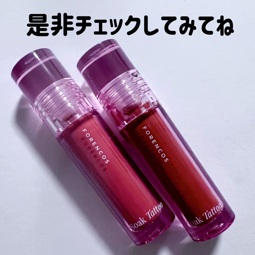 タトゥーのように落ちにくい守護神リップ💄FORENCOS(フォレンコス)SoakTatooTint(ソークタトゥーティント)全16色🤎05Rustuカフェオレのようなソフトベージュカラー☕💜07Audeくすみのあるモーヴピンクカラー🍇みずみず...