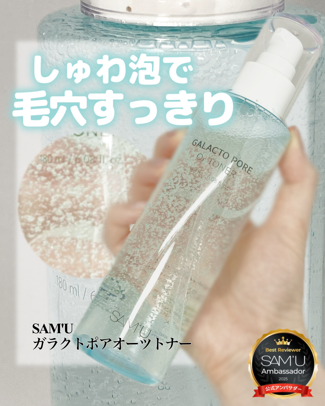 SAM'UGALACTOPOREO2TONER振ると酸素を含んだエッセンスバブルが出現するトナー。軽く振り混ぜるとプツプツと気泡ができます!ベタつきのないなめらかなテクスチャー。しっとり感が感じられるもののサラサラした使い心地。肌馴染みが良く...