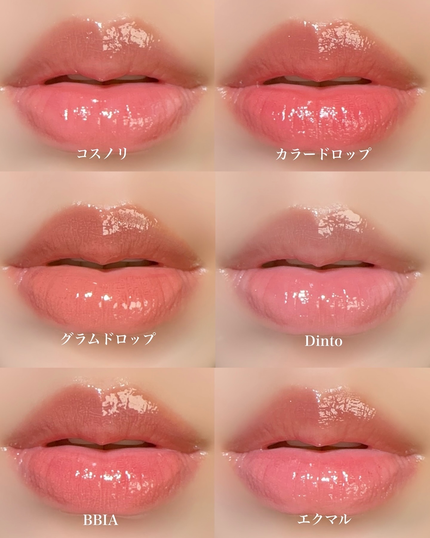 ねっちょりボリューム感あるテクスチャーだけど、ベタつきなく使いやすい。 ティントじゃない普通のグロスだから色もちは良くない。 発色ナチュラルだからこれだけでもいいけど、他のリップと合わせても可愛い!!