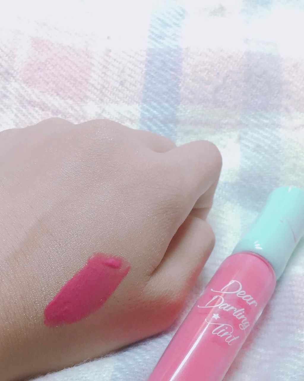 塗ると紫から青みピンクに変わります。 ピンクラメが入っていて可愛いです♡ 匂いはおもちゃのコスメみたいな感じで臭いです、、 #韓国コスメ#エチュード#リップ#プチプラ#プチプラリップ #プチプラコスメ#ティント