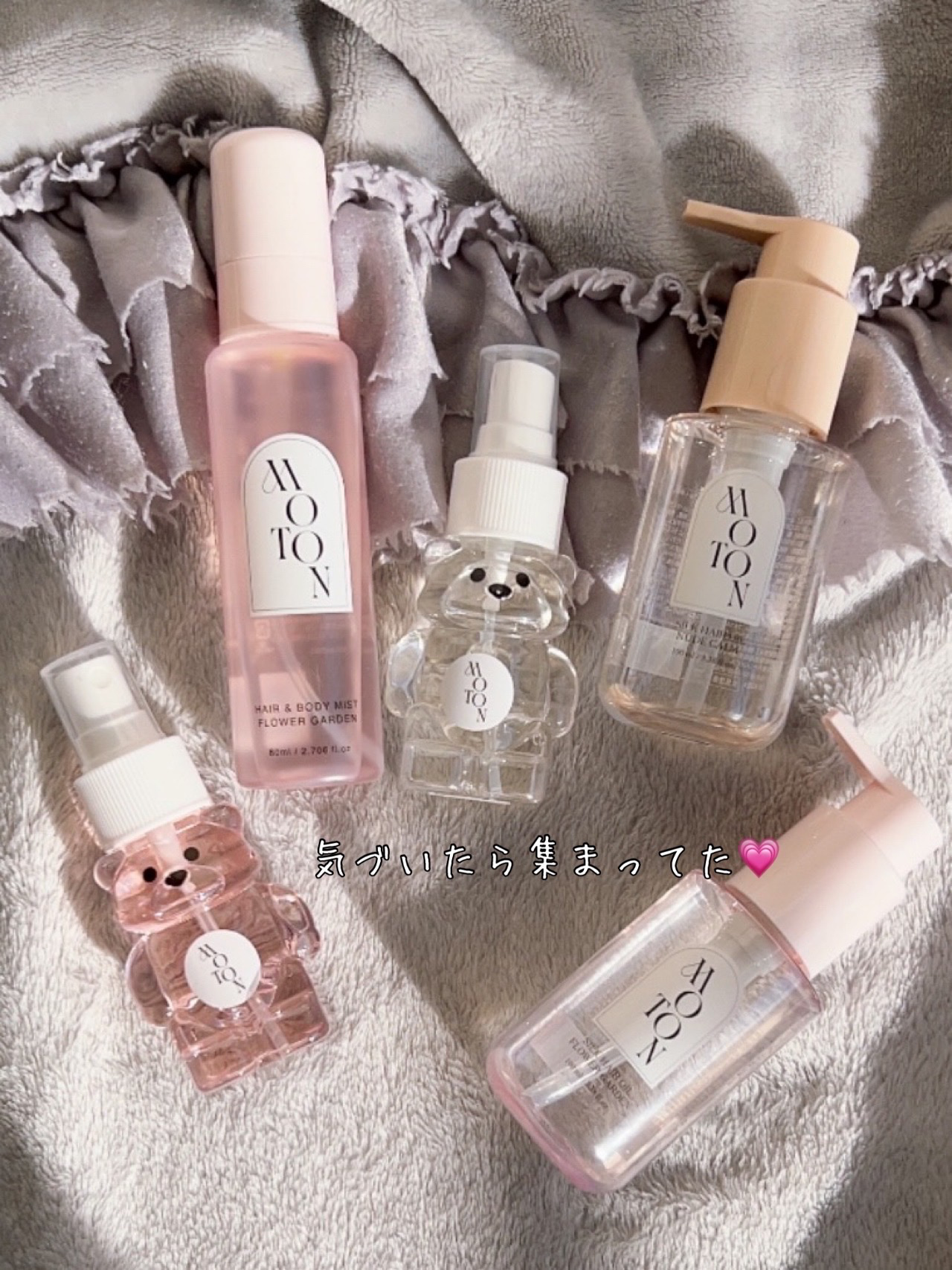 バズってるMOTON👻 現物を見たわけでも手に取ったわけでもまして匂いも嗅いでないのにミストとヘアオイルまとめて買ってしまった😂 手に取りやすい価格でさらにいい匂いとあっちゃ買わない選択肢消えるよね、、? が、この3つの香りはフラワーガーデンもトワイライトジャーニーもヌードカルムもどれも嫌いな香りではなさそうと判断したので(してしまった)ので一気にドーン🤣