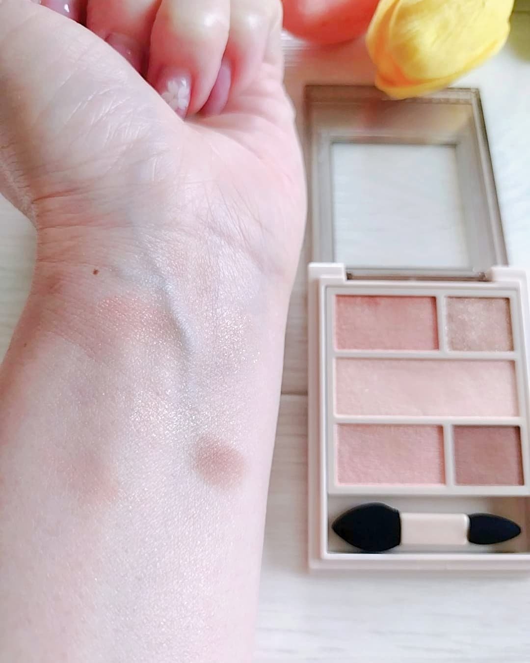 パケから何から何まで本当に可愛い〜😍💖 テンションあがりまくりです🙈 自然派コスメだけど、めっちゃ発色が良い❣️ ニュートラルカラー6色で構成されていて 目のキワやアイラインまで使用できちゃう👍💕 可愛いカラーばかりのマット3色、シマー3色で使いやすいし メイクを楽しめるよ🩷 でね、フタを開けると甘い良い香りがするの❣️ これもお気に入りのポイント🥰