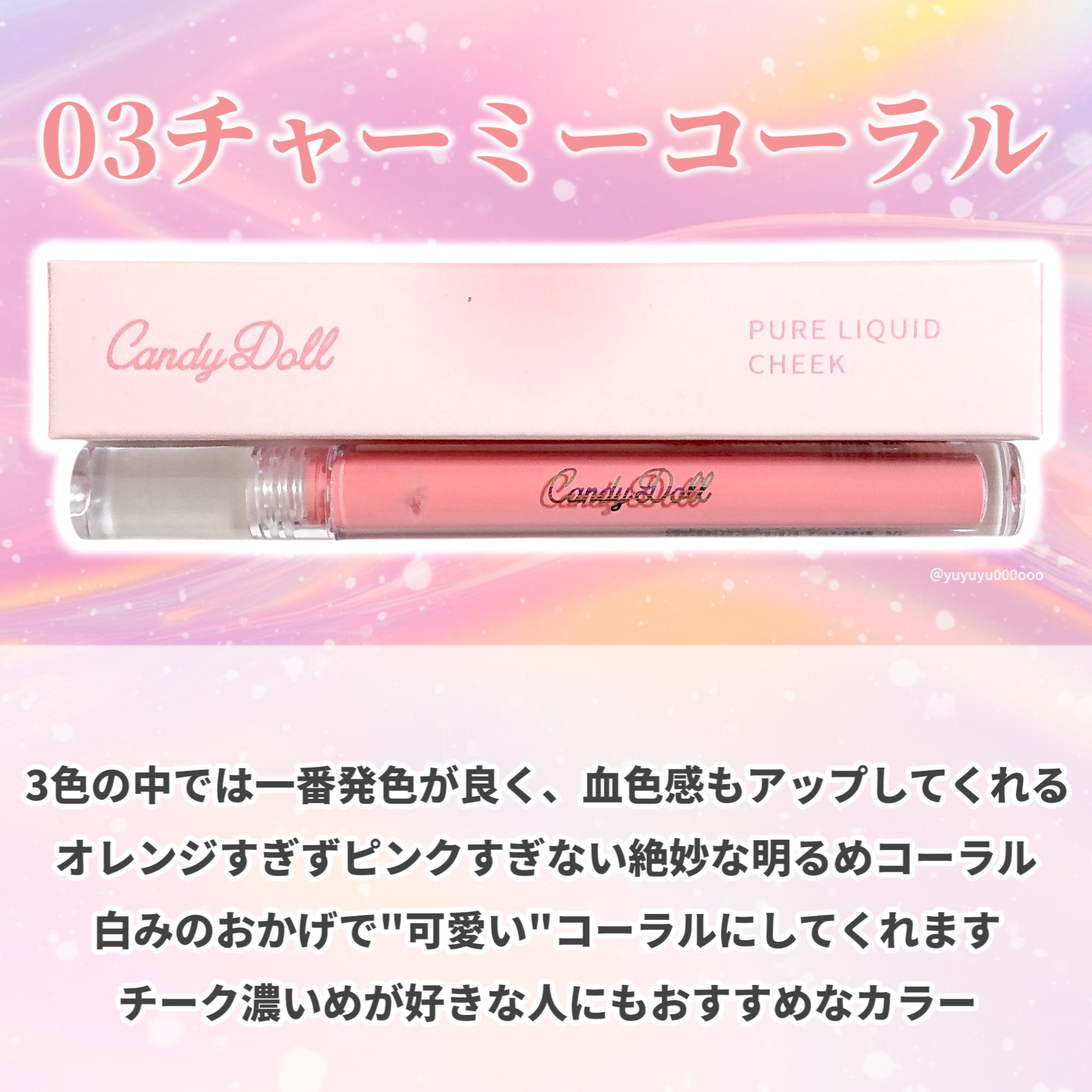 𝐂𝐚𝐧𝐝𝐲𝐃𝐨𝐥𝐥🤍血色感&透明感の水彩チーク🎨゚・。.。・゚・。.。・゚・。.。・゚・。.。・゚・。.。・゚・。.。・゚♠𝐂𝐚𝐧𝐝𝐲𝐃𝐨𝐥𝐥ピュアリキッドチーク 𝟏,𝟔𝟓𝟎円#提供゚・。.。・゚・。.。・゚・。.。・゚・。....