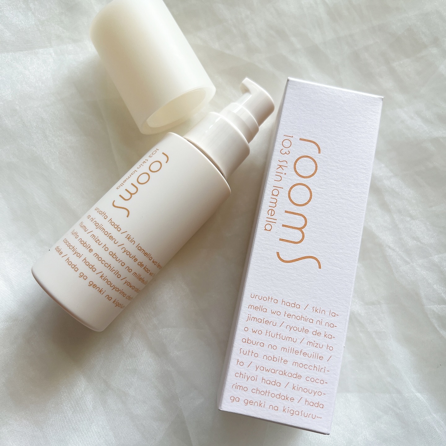 - room S(ルームエス)103 スキンラメラはミルク状美容液です。 乳白色のリッチなテクスチャーで、肌が必要とするうるおいを閉じ込めます。肌が本来持つ “バリア機能*1”の重要な役割を果たす、水と油(細胞間脂質)がミルフィーユ状に重なっている肌のラメラ構造に着想を得て、保湿成分(セラミド、コレステロール)を配合しています。 ■美肌を守る細胞間脂質の主成分を配合 細胞間脂質の主成分であるセラミド(セラミドAP、セラミドNP、セラミドEOP、フィトスフィンゴシン)、コレステロールを直接肌*2に与え、うるおいを届けることでバリア機能をサポート。 ■細胞間脂質を支える5つの配合成分 ラメラヒアルロン酸、ピーチリーフエキス、ブドウエキス、パイナップルエキス、パールエキス(すべて整肌成分) その他、ローズマリーエキス、グリチルリチン酸2K、ヒアルロン酸、キシリトールなど。(すべて保湿成分) *1バリア機能とは・・・肌の表皮の角質層が乾燥や外部刺激から肌を守る役割 2角質層まで