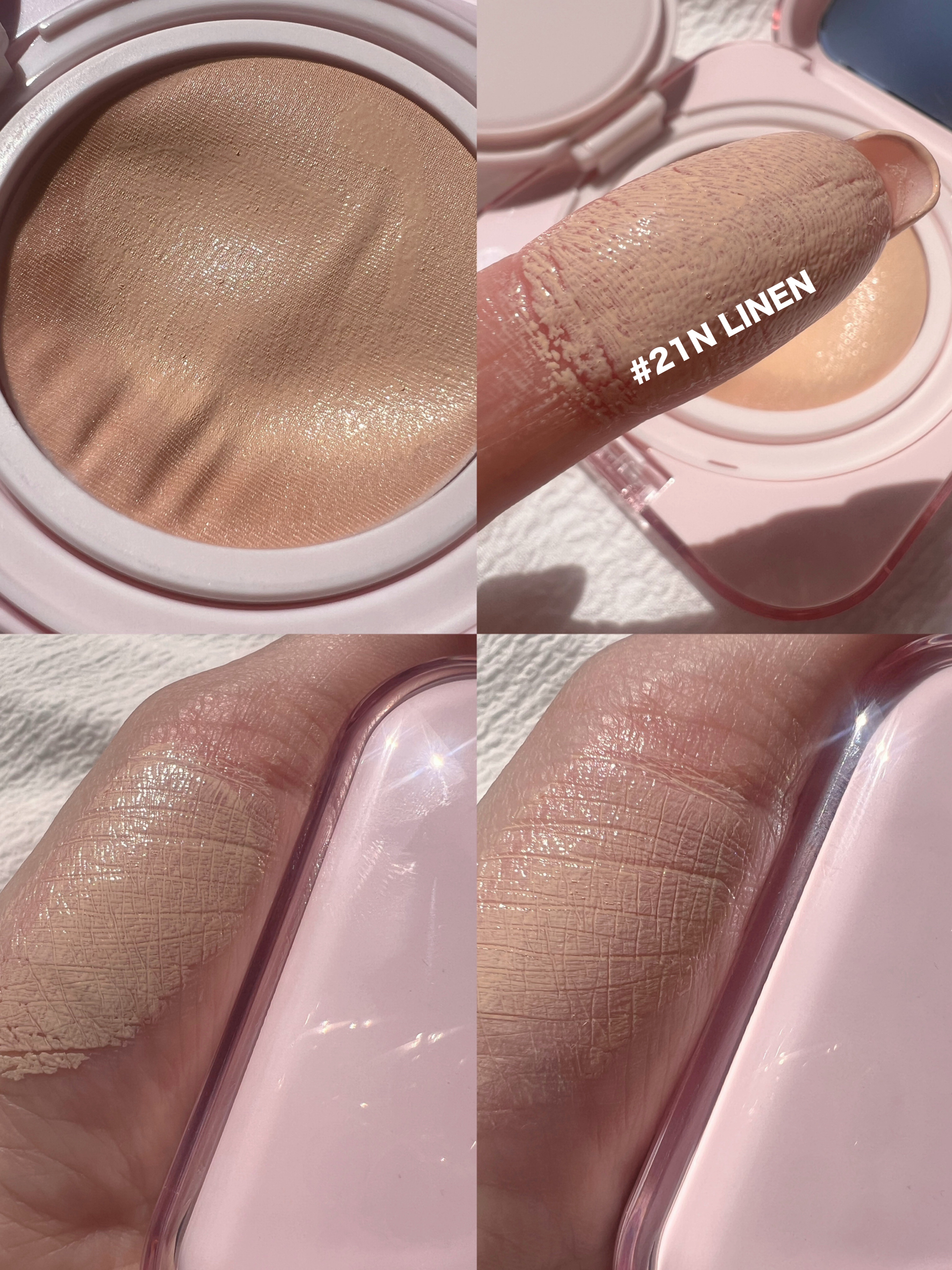 パウダーは、出した時は、サラサラで片栗粉のようなテクスチャーです。イニスフリーのノーセバムパウダーより、粘度があって手につけると、キャンメイクの方がしっかりと付着します。 ただ、馴染ませるとびっくり。まるでパウダーが無かったかのように、さらーっと肌になじみます。肌にのせた時は、しっかりパウダーとしてあるのに、粒子が細かくふんわりとなじみ、すごく軽い使用感でした。 カラーは、シルキーベージュで、白浮きせずに肌に馴染みやすいです。ピンクがかっているので、自然に肌が明るくなるのを感じました。 そして、驚いたのが付属の"パフ"プチプラとは思えないほど、ふわふわで豪華な作りです。心地よい肌触りで、毛足3mmで厚みもしっかりあり、粉含みも良いです👏🏻さらに嬉しいのが、汚れが目立ちにくいように、元々のパフがピンクベージュの色付きです。こういう些細な配慮がすごい。。