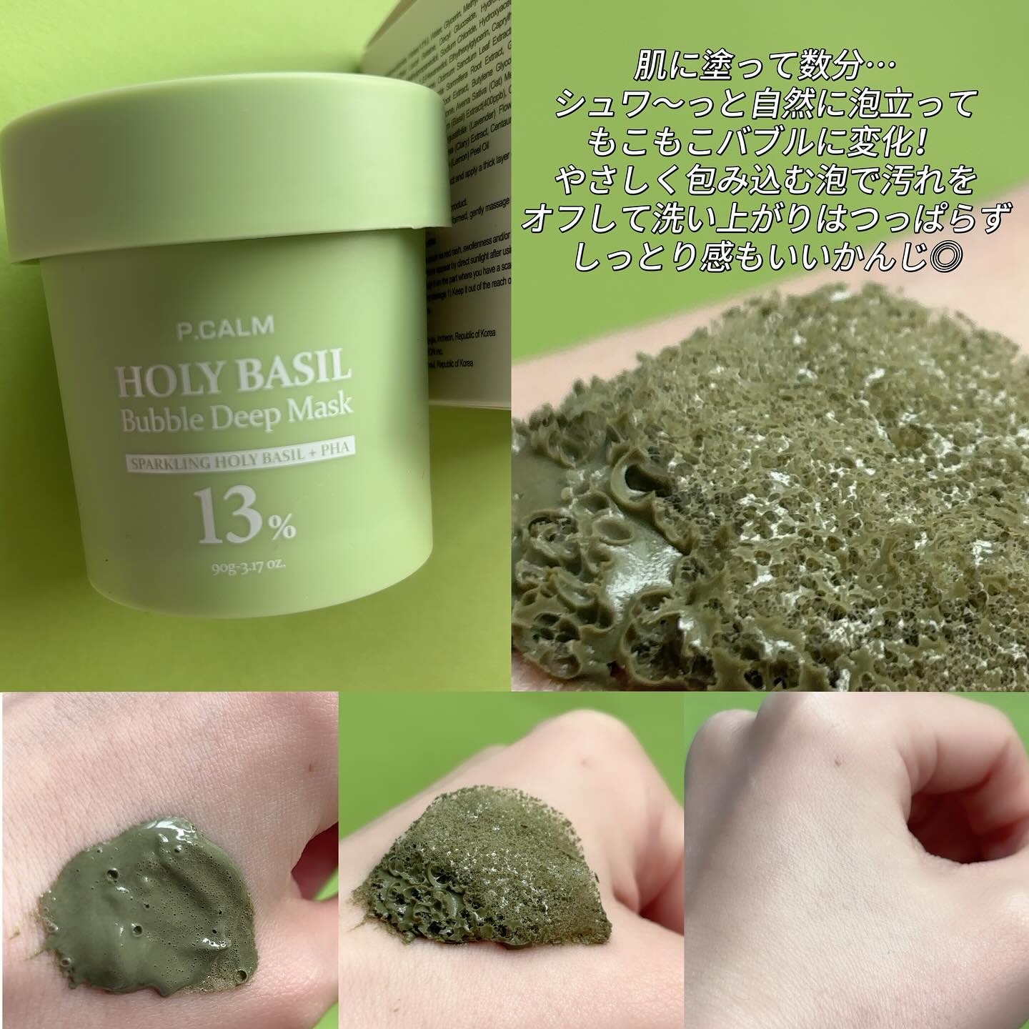 #PR@pcalm_japan𓂃𓈒\新感覚の炭酸バブルパック/P.CALM-ピーカム-ホーリーバジル炭酸バブルパック🫧肌に乗せると、もこもこ膨らむバブルで、肌を清潔に繋え、しっとりもちもち肌に導きます。個人の感想ですが、洗い上がりはお肌が柔ら...