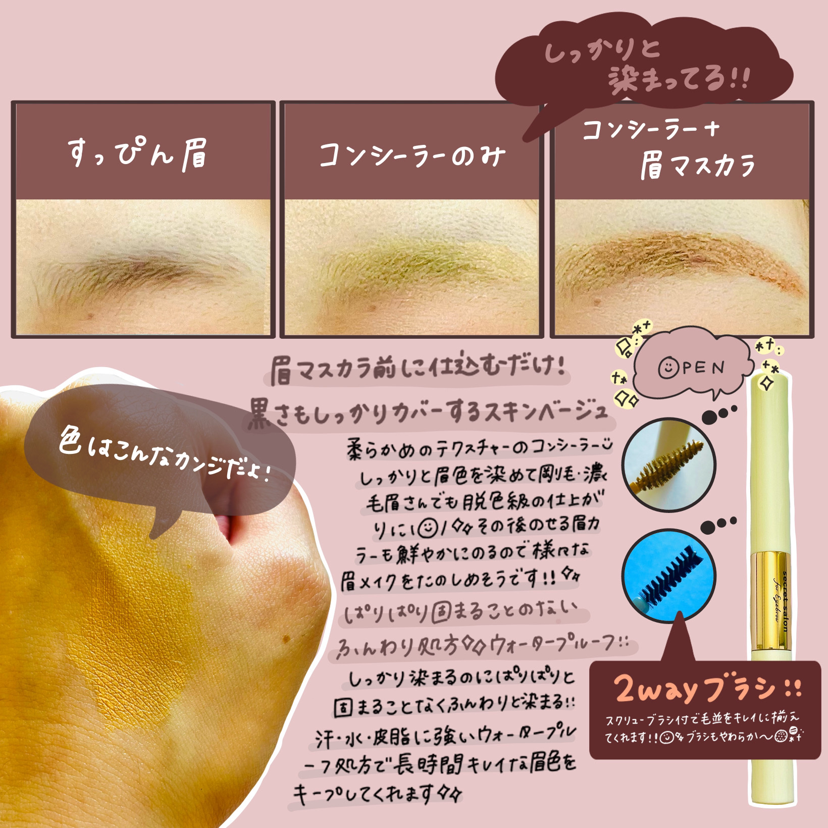 ひと塗りで垢抜け淡眉になる高発色な眉毛用コンシーラースクリューブラシ付きで便利! 黒さをしっかりカバーするスキンベージュカラー♡ 高発色でささっと塗るだけでふんわり淡い垢抜け眉に! ウォータープルーフで汗・皮脂に強いのもありがたい! 黒眉さん、太眉さん必見!