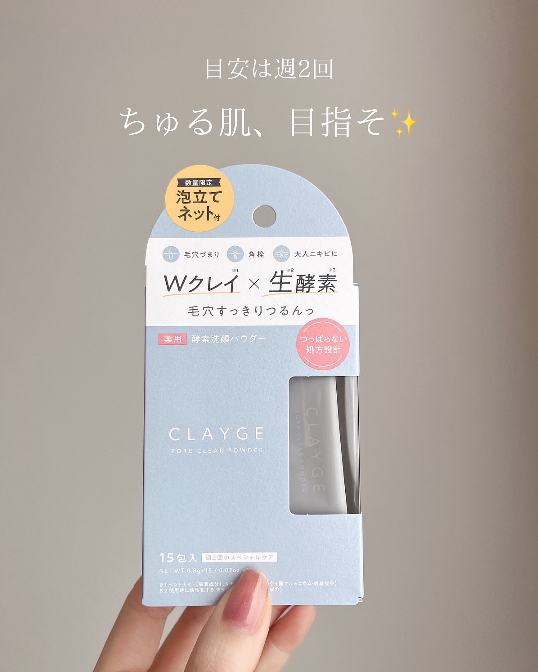 【CLAYGEポアクリアパウダー】肌荒れケアや透明感のサポートもしてくれる薬用酵素洗顔パウダー✨酵素洗顔は肌がつっぱるイメージがありましたが、洗い流した後も肌がつっぱる感じが無かったので気負わず使えるところが良かったです!※週2回を目安に使用...