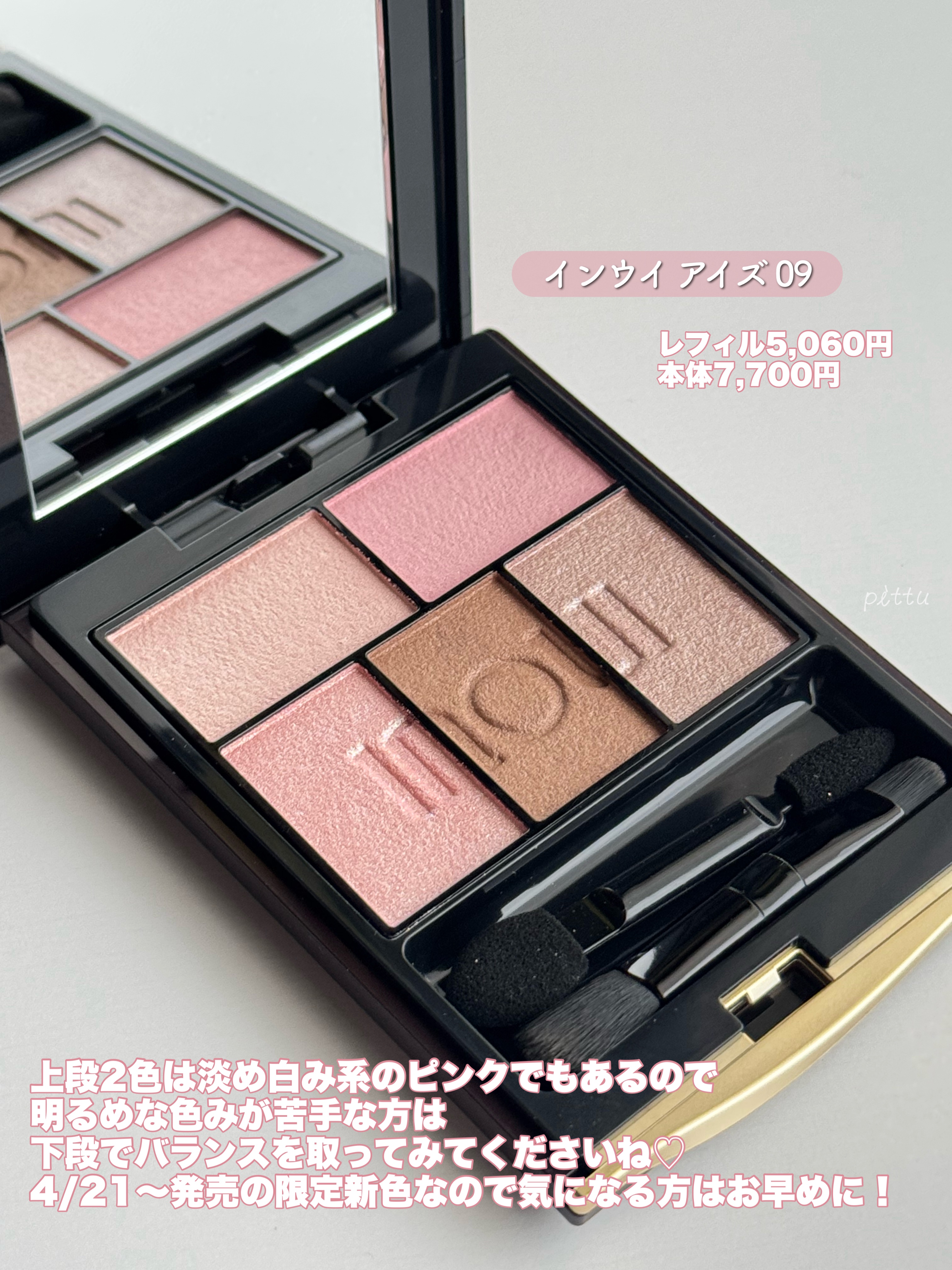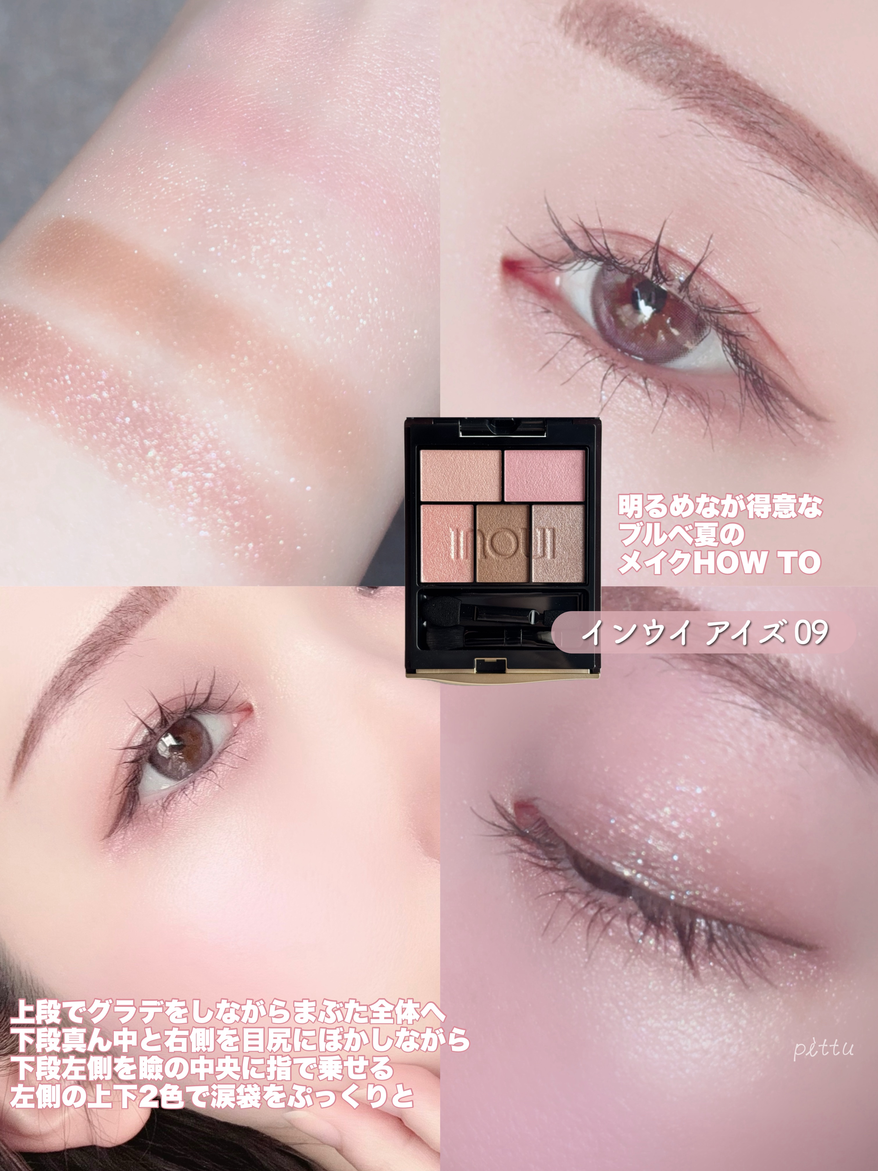 #コスメ購入品▶︎INOUIインウイアイズ09(数量限定カラー)リラクシーな柔らかさを感じるピンク系カラー💓儚げで繊細で…でもどこかあざとさがあるようなパレット🥰(勝手ながら森香澄ちゃんのイメージ😂)粉質もしっとり柔らかで、ラメが上品でキレイ...