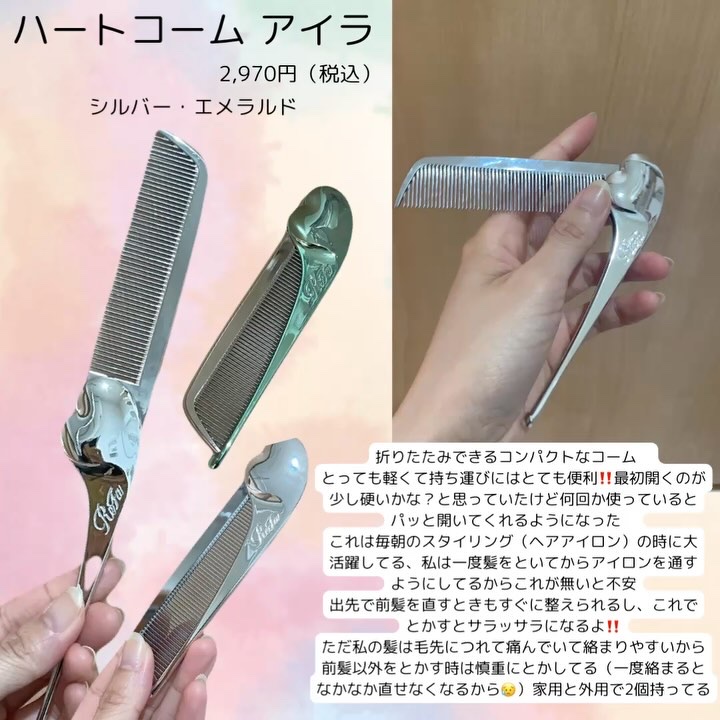 リファハートコームアイラは髪への負担を軽減する「マーキス」構造が採用されており、髪あたりが優しくなっています。 持ち運びに便利なコーム(櫛)で、約13gと軽量、折り畳みができ、プレゼントに便利なパッケージ付き