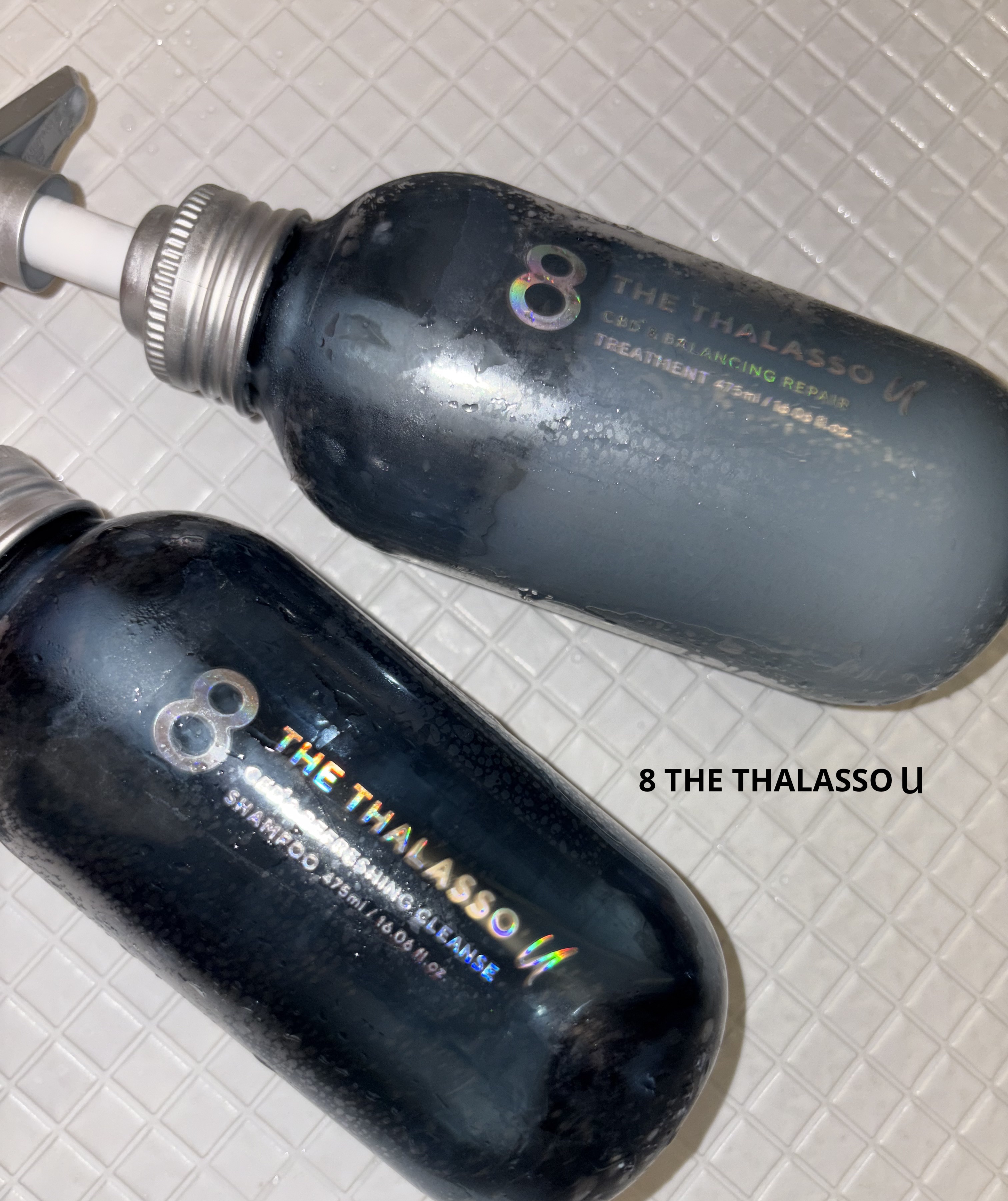 LIPSでも大人気のエイトザタラソ🫧 今回初めて使いましたが、これシャントリで過去一好きかもしれない😍 エイトザタラソ ユーはスキンケア発想で髪を保水するエイトザタラソのユニセックスライン。独自成分のCBDと海洋美髪成分が配合されていて、保水しつつ頭皮や髪のダメージの修復ケアしてくれます🐟 ムスキーサボンの香りはどこか王道のサボン系の香りではあるものの甘さもほのかにあり、男女問わずに使いやすいし、この香り大好きでした✨