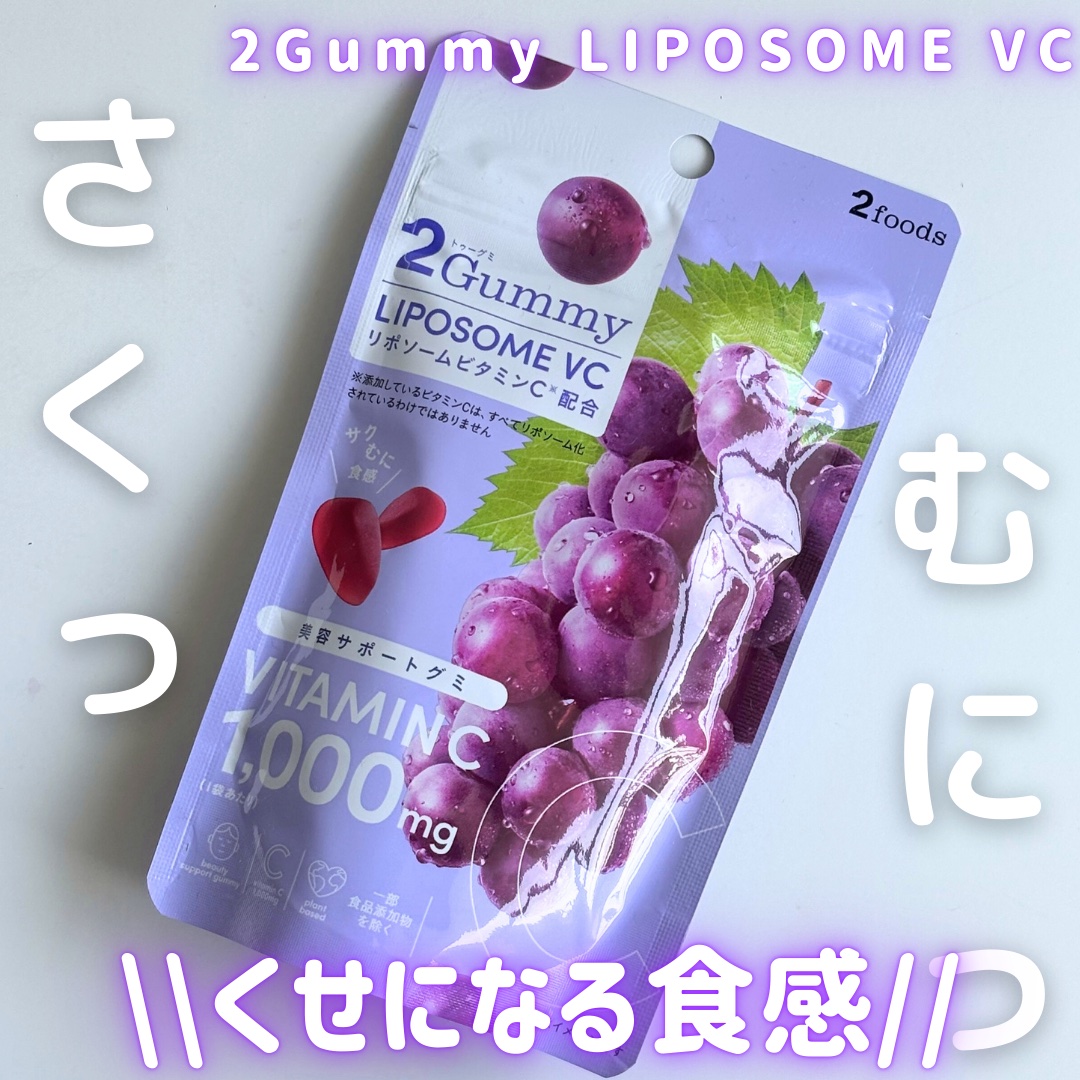 - 「食べるリポソームビタミンC」登場。2Gummyは、話題のリポソームビタミンCを配合したグミ。量と頻度に着目し、1袋にビタミンCを1,000mg配合。おやつ感覚で、いつでもどこでもビタミンCをチャージできます。
