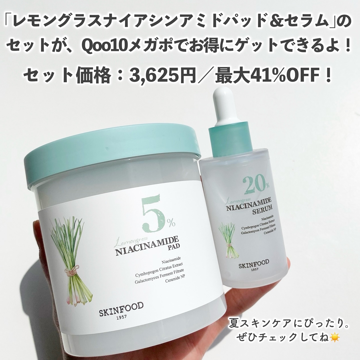 SKINFOOD✨\SKINFOODの新商品/✨フォロワー138万人の美容系クリエイター「コスメヲタちゃんねるサラ」さんとの共同開発で誕生した日本向けの🆕パッド❤️レモングラスナイアシンアミド 5%パッドレモングラスナイアシンアミド 2...