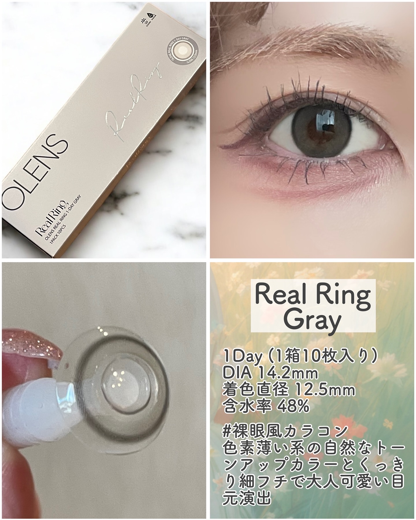 ♡新作のリアリッシュとリアルリングどっちが好き??🤍🤍OLENS🤍→RealishGray•Brown(リアリッシュグレー・ブラウン)1Day(1箱10枚入り)DIA14.5mm着色直径13.5mm含水率48%太めの黒縁でくっきりとした目元を...
