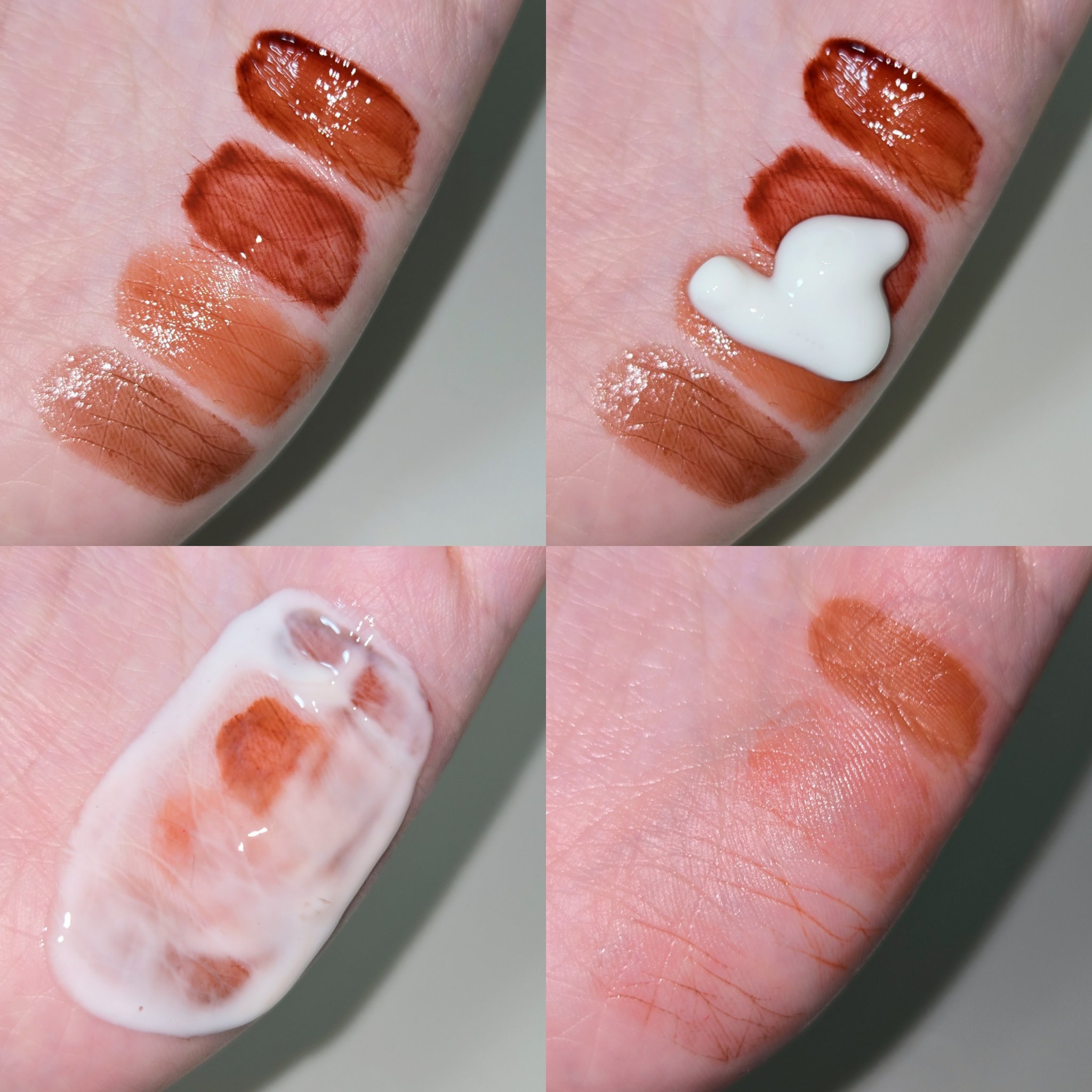 ティッシュオフ後(写真5枚目)も色持ちがよかったのは セザンヌとペリペラのウォーターベアーティント💄 CEZANNE ウォータリーティントリップ 01 ナチュラルピンク 660円 PERIPERA ウォーター ベアー ティント 07 MUTE PARADISE 1090円(Qoo10価格)
