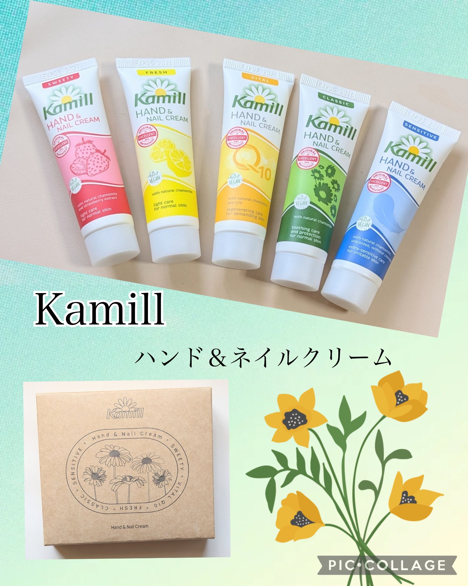 .kamillハンド&ネイルクリームミニkamillのハンドクリームべスト5をミニサイズで楽しめる企画セット!カモミールから抽出したオイルのビサボロールが敏感な肌を落ち着かせてくれるヴィーガン処方のアイテムです。セット内容は左からスウィーティ...