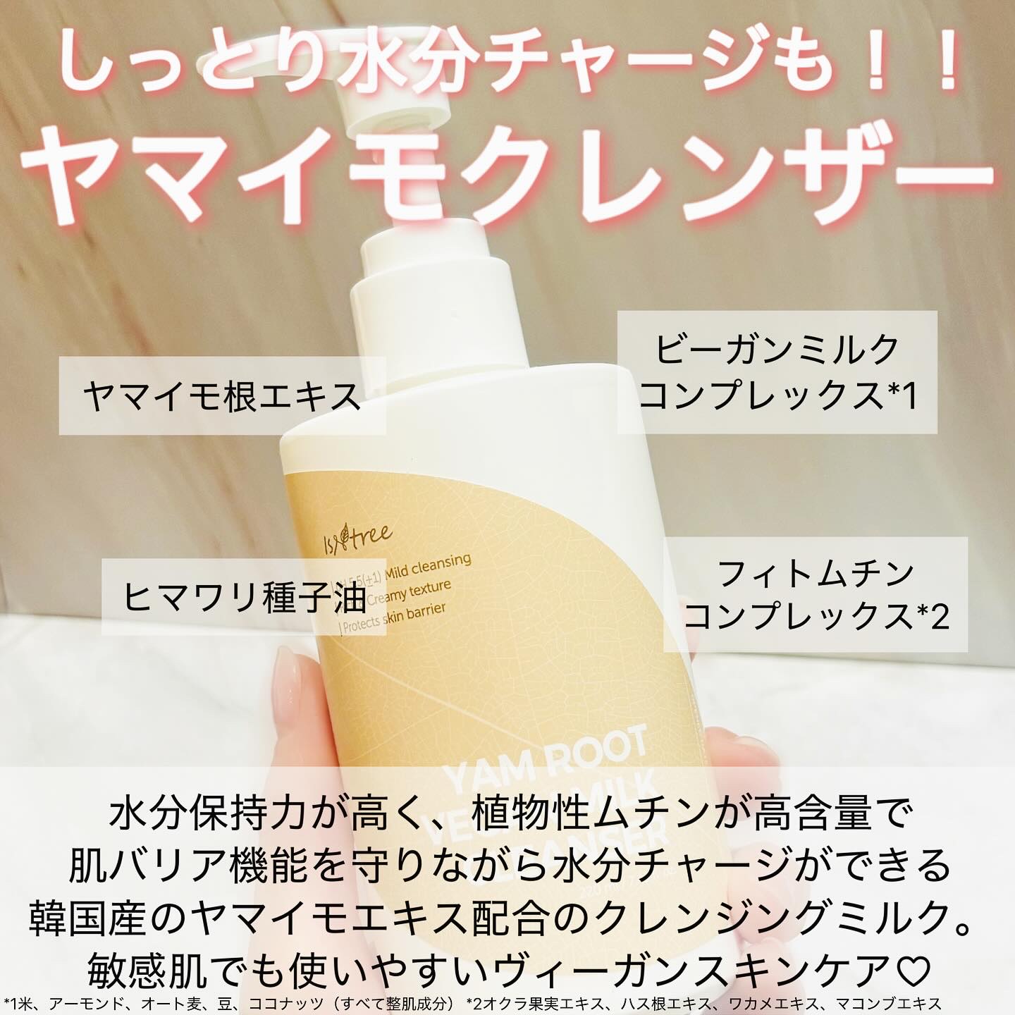 isntreeヤマイモビーガンミルククレンザー@isntree_jp【保湿クリームを塗ったようなしっとりクレンジングミルク】肌のうるおいをキープしながら水分チャージ!韓国産ヤマイモエキス配合。・韓国ヤマイモの成分※でしっとり洗顔ができる ※保...