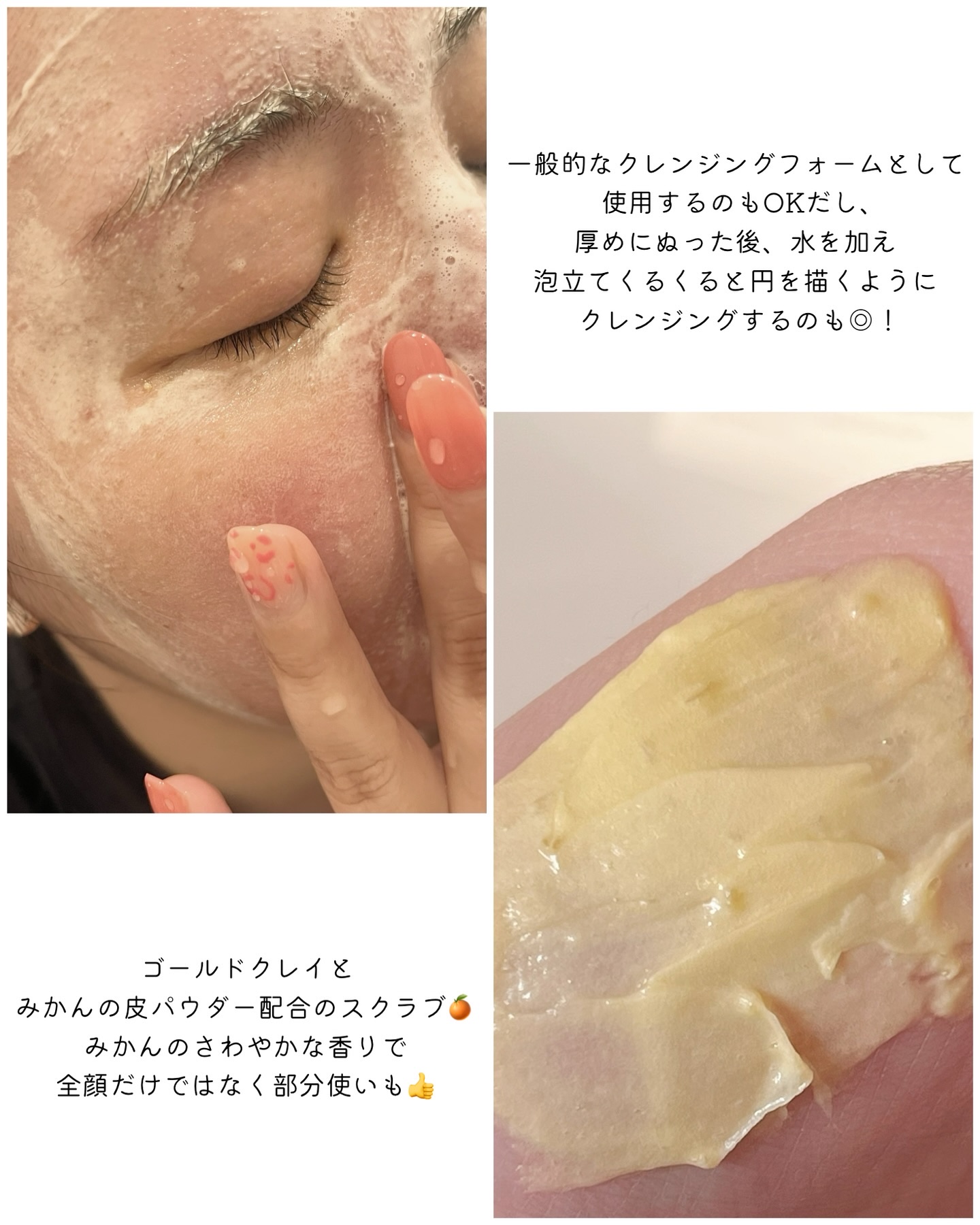 キメ細かく弾力のあるふわもこ泡。 泡って摩擦レスな感じで気持ちいいですよね。 ツヤツヤな水光肌に。 しっとりとして保湿感もあります。 これは私の場合ですが……ベタつくとかペタペタするとか気にならず。 華やかでフローラルな香りがしっかりするので、香りもの好きな方は◎苦手な方は注意です⚠︎ 泡で簡単にケアできるし、つやつやもちっとした肌に仕上がるので私は気に入ってますー🫧
