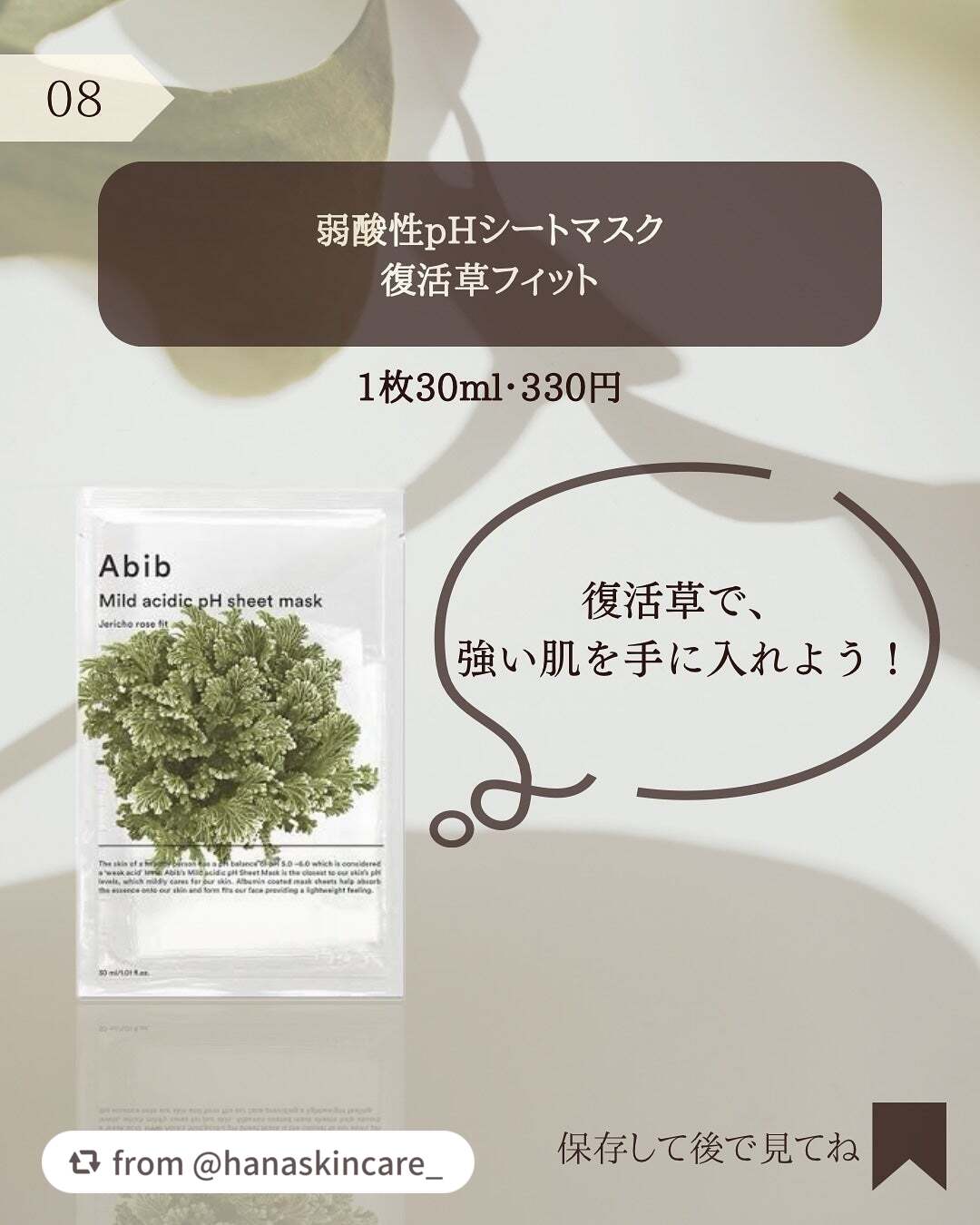 商品詳細情報Abib 弱酸性PHシートマスク 復活草フィット